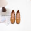 Johnature Genuine Leather Retro Women Shoes Handmade Round Toe Buckle Low Heel Comfortable Pumps