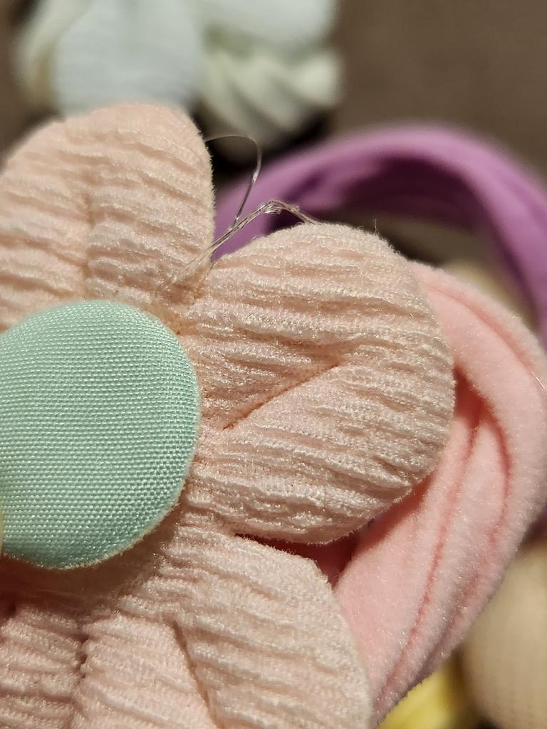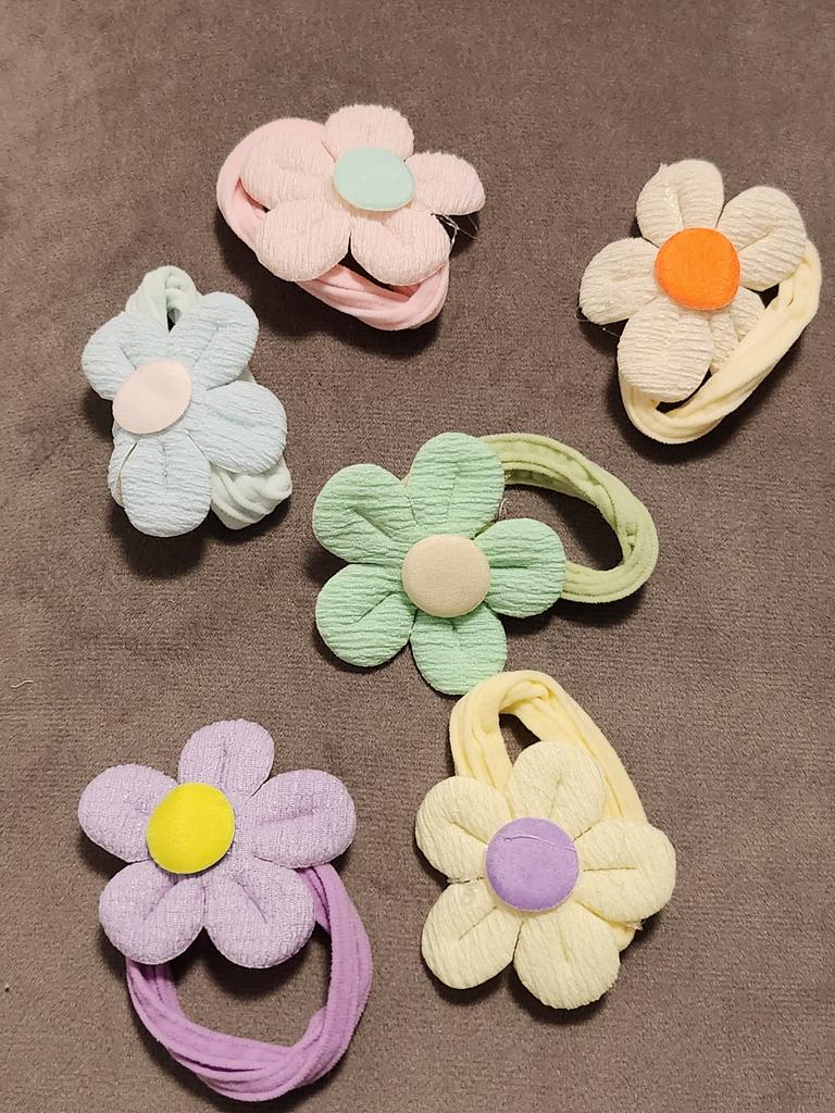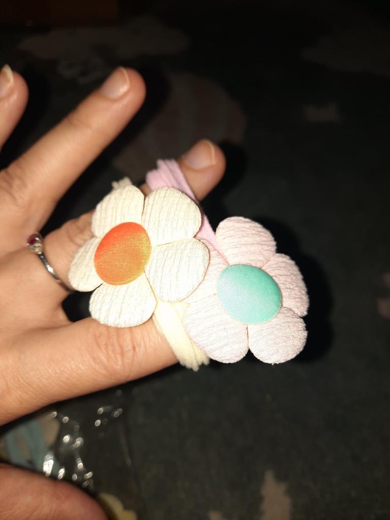 The rubber bands are soft and colorful, but some have flowers that are poorly glued on. I'm afraid that over time they may come off. There are 6 pieces in the order.