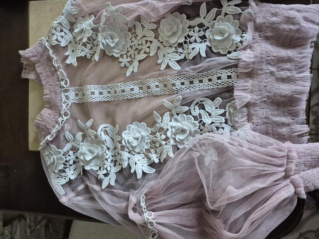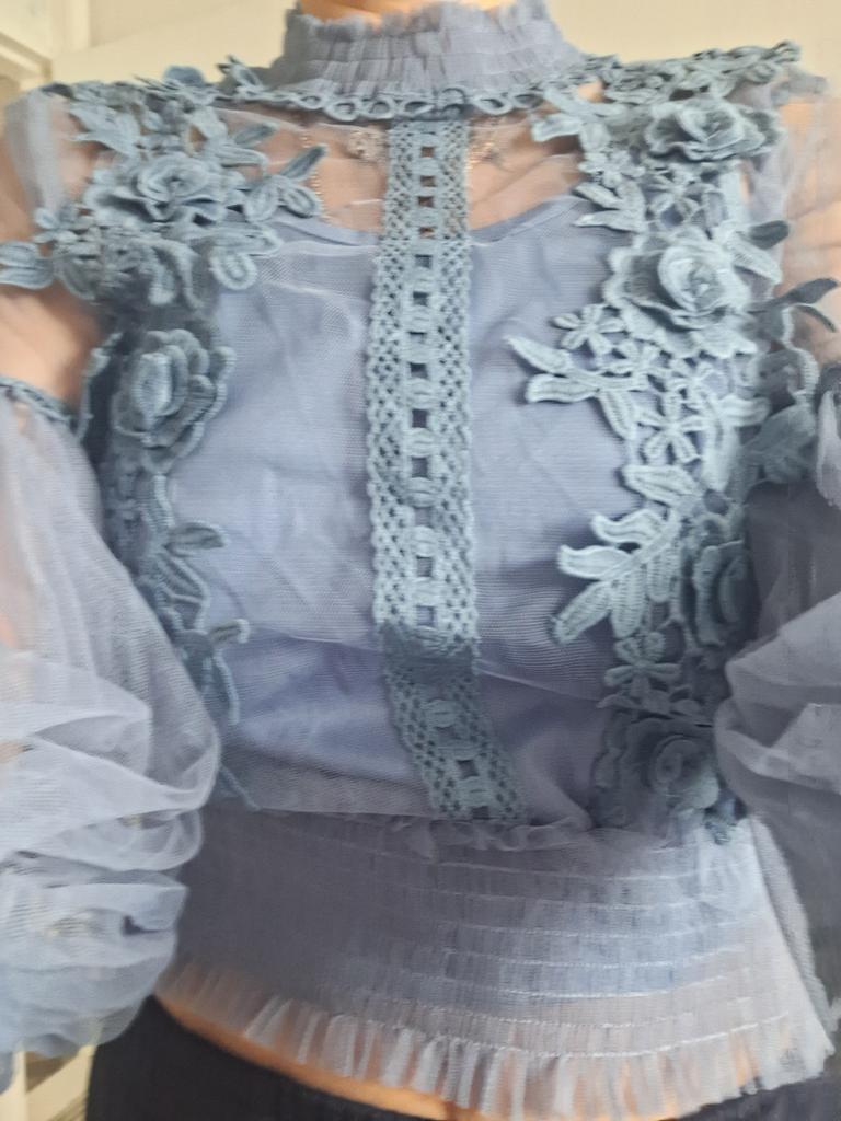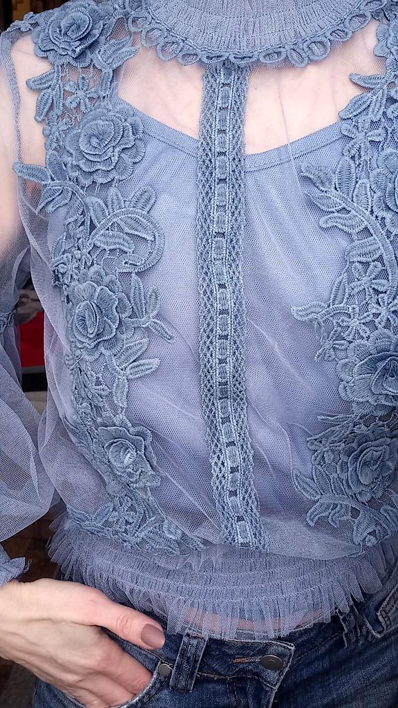 Beautiful blouse, I bought it for my daughter, no flaws, I hope she likes it. Out of two pieces, I thought the bottom piece was attached, but no, it cannot be worn without it, the rich embroidery, the color corresponds to the seller's image, it deserves 5 stars.