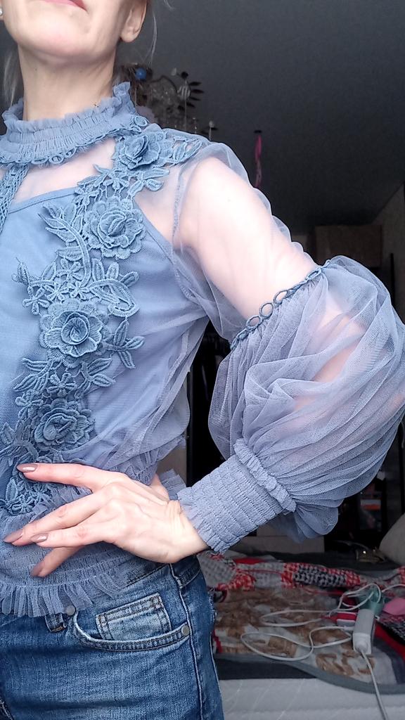 A bit tight in the biceps, otherwise stretches well I add - after washing, all the patches with flowers turned white. It looks strange, the blouse turned out to be disposable(