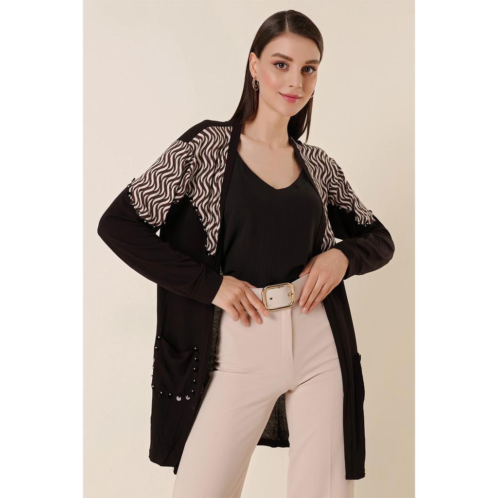 S Patterned Lycra Cardigan with Pulp Detailed Pockets