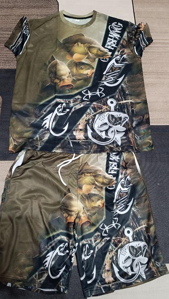 Men 3D Fish Printed Sports Fishing Camping Camouflage Hunting T Shirt Set for Man Clothing Streetwear Plus Size Tees/Short/Suits