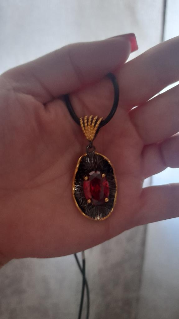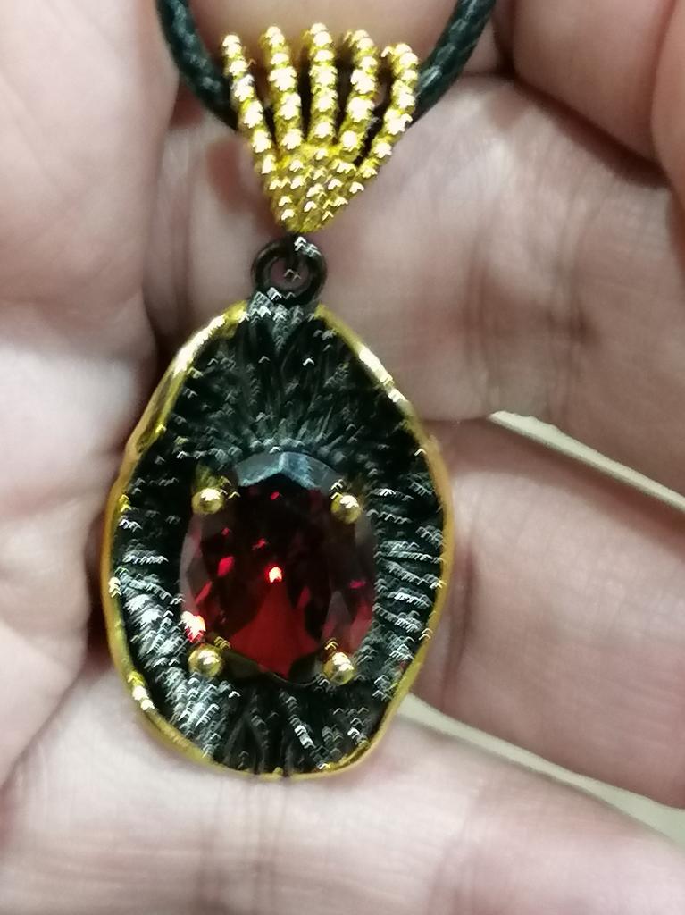 Very beautiful pendant. Goes well with the black strap. And the color of the stone is just right for the overall background. Excellent!