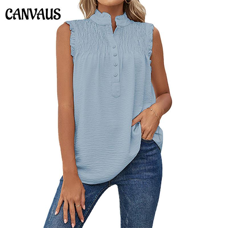Summer Women's Vest Sleeveless High Neck Button-frilly Loose Casual Top