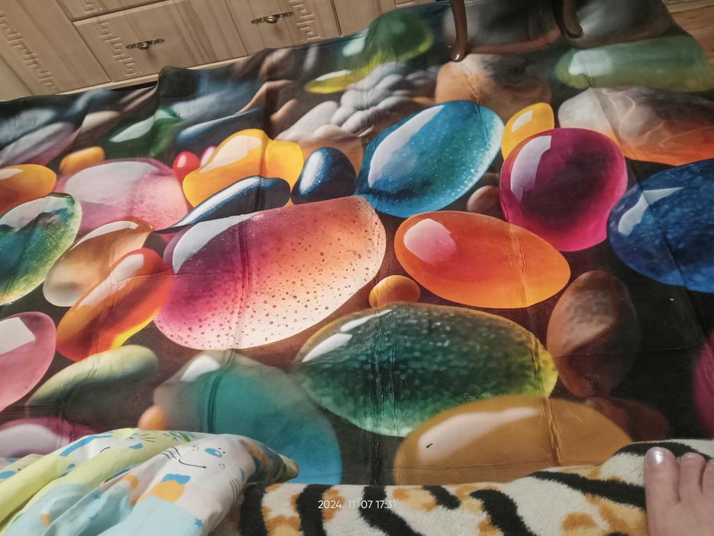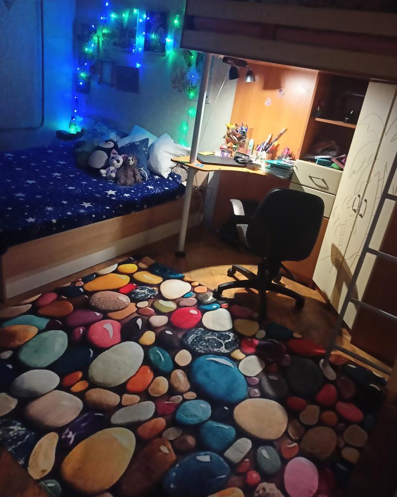 Bright, pleasant, soft, the rugs are nice, they look great by the bed. Thank you.