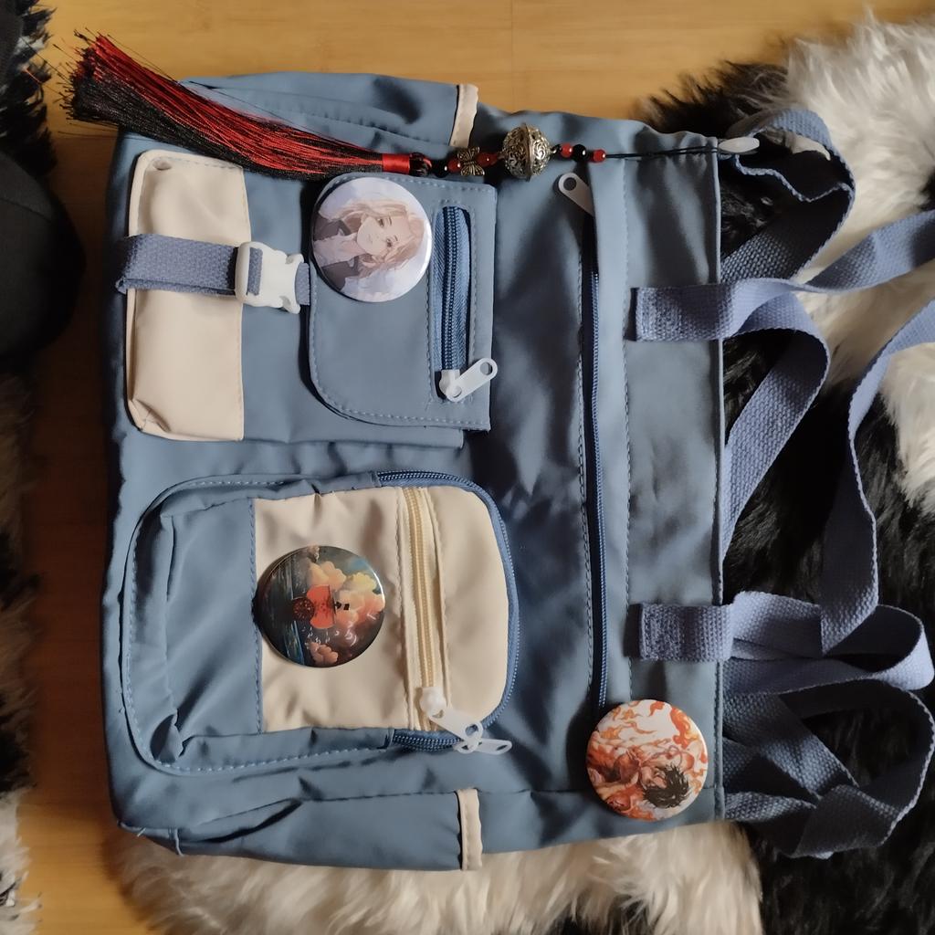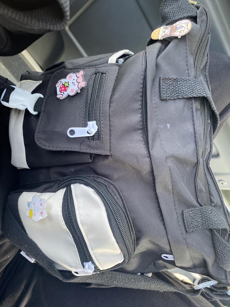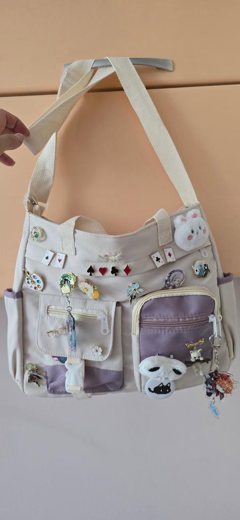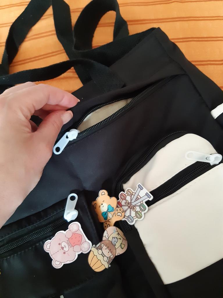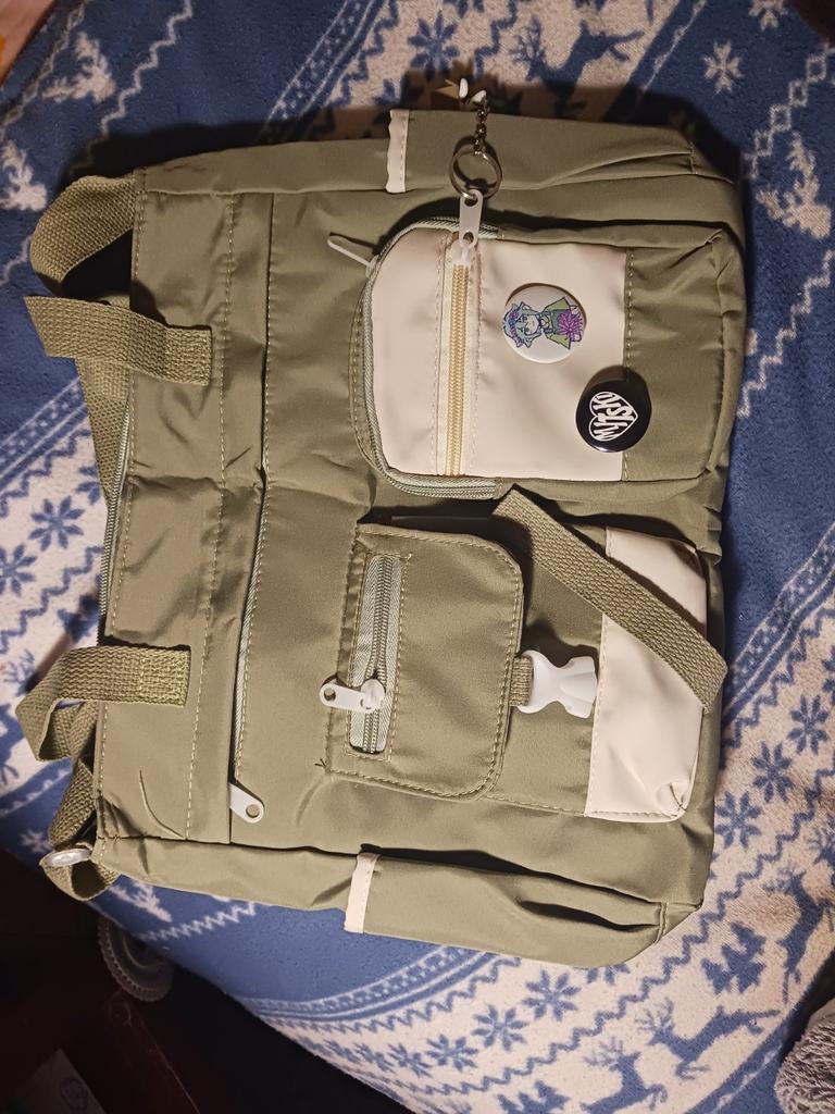 ahhhh, I forgot to add a review :3 the handbag is very cool!!! the price is not expensive, the bag is good. The threads don't seem to be sticking out. (if anything, the round badges are mine!!!! and the cute little animal badges were given as a gift with my handbag) the bag is good, many pockets!!! (9) no cons:3