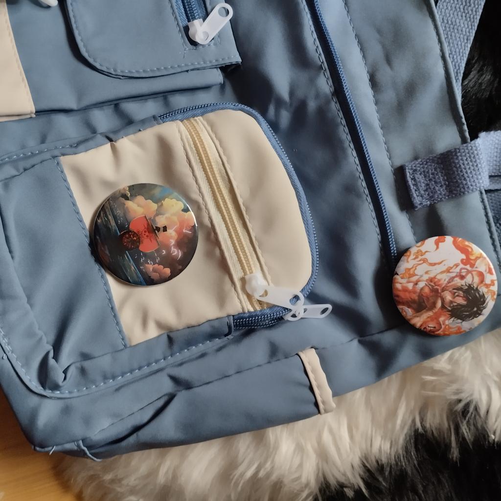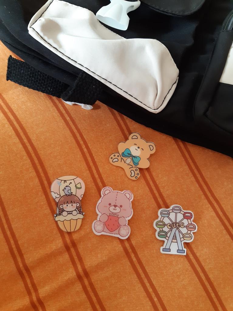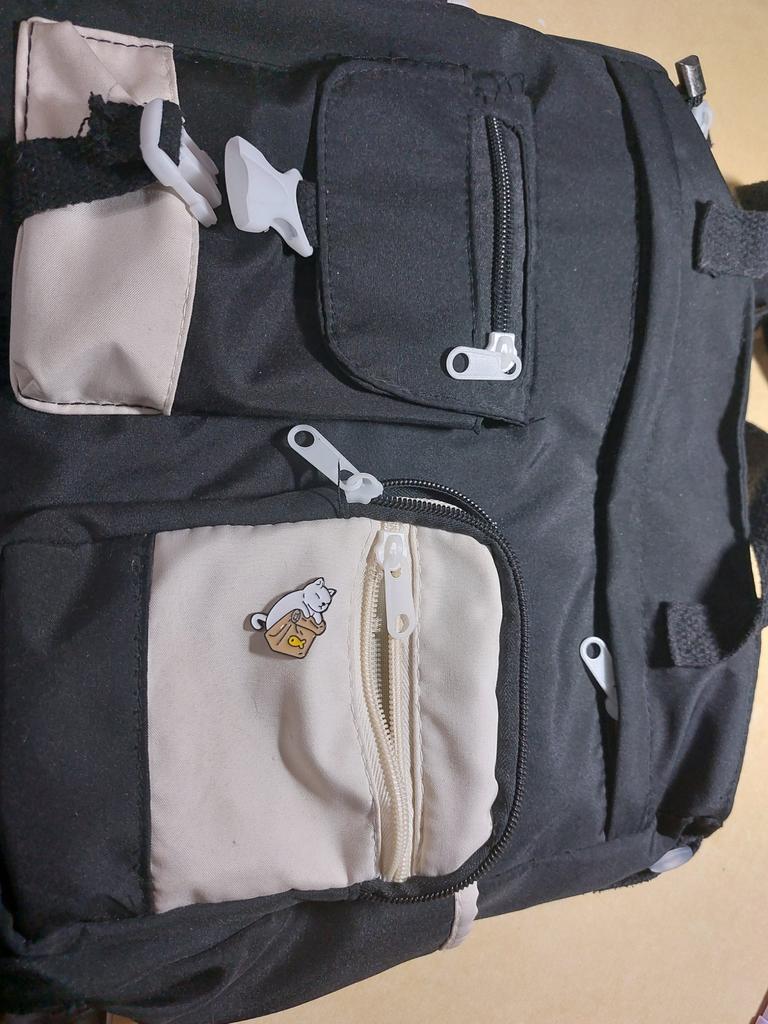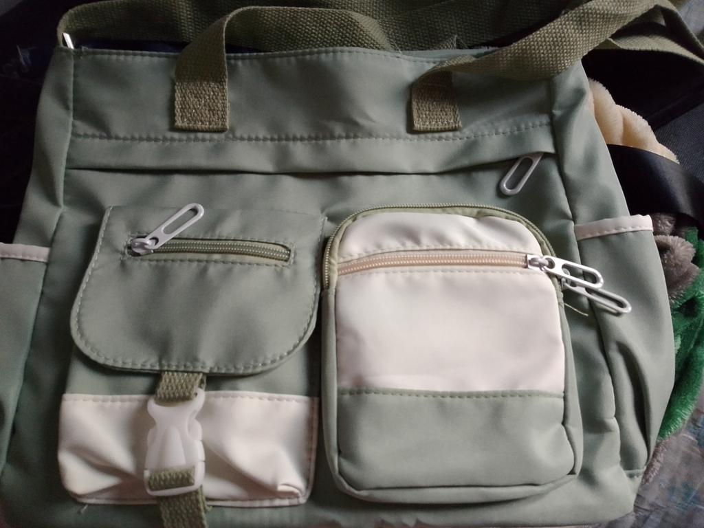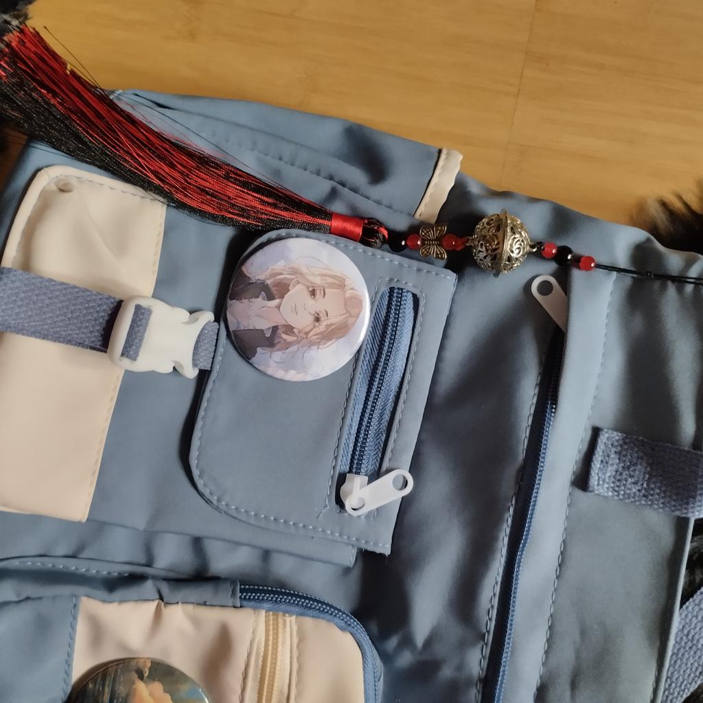 ahhhh, I forgot to add a review :3 the handbag is very cool!!! the price is not expensive, the bag is good. The threads don't seem to be sticking out. (if anything, the round badges are mine!!!! and the cute little animal badges were given as a gift with my handbag) the bag is good, many pockets!!! (9) no cons:3