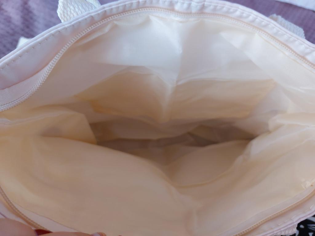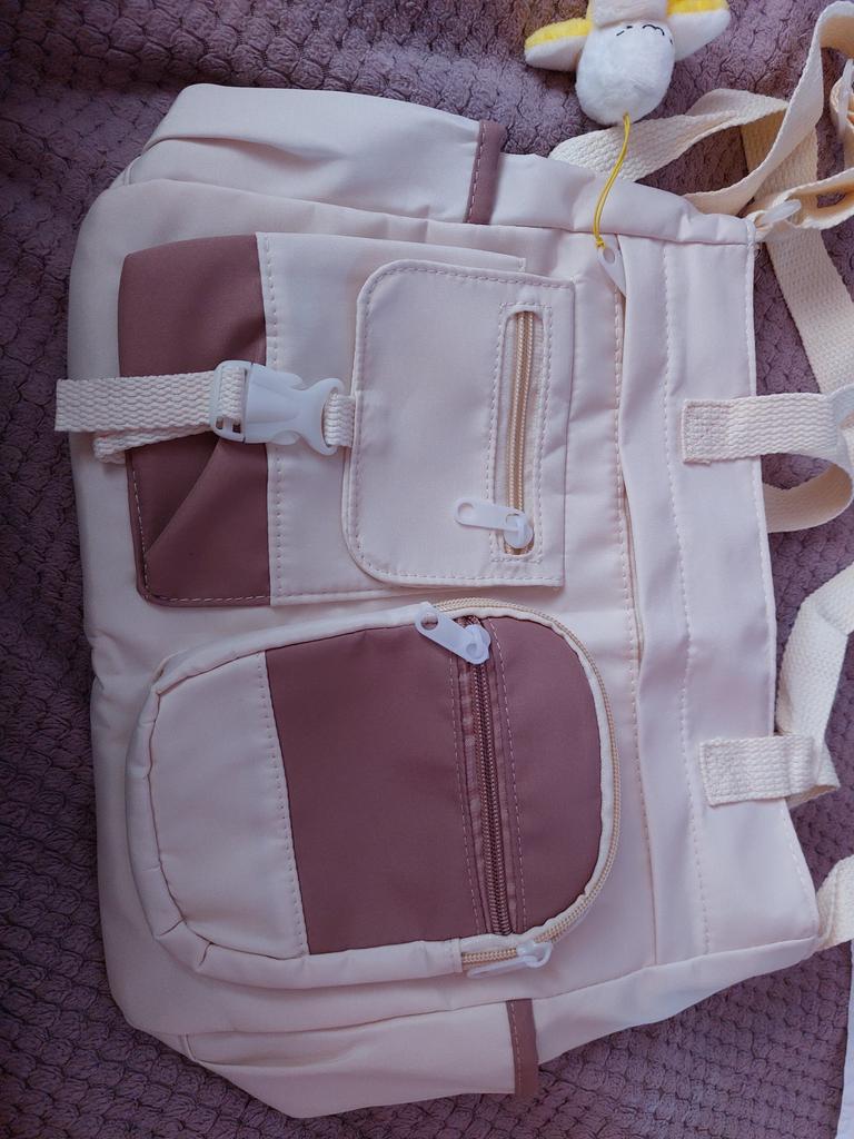 The bag is cool. Lots of pockets, including on the sides and inside. The inner material rustles like a doll's candy wrapper dress, but I like it. Looks very cute 😌
