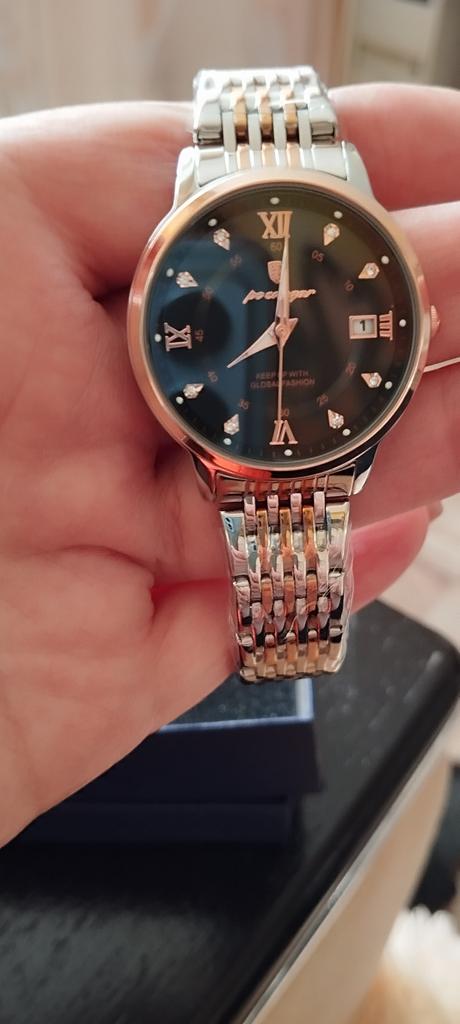 The watch arrived well packed, beautiful, but darker than in the photo. If anyone has problems with changing the time, then you need to move the winding crank a little harder - once the date changes, move it twice, you change the time.
