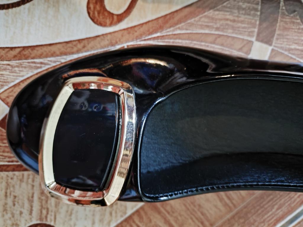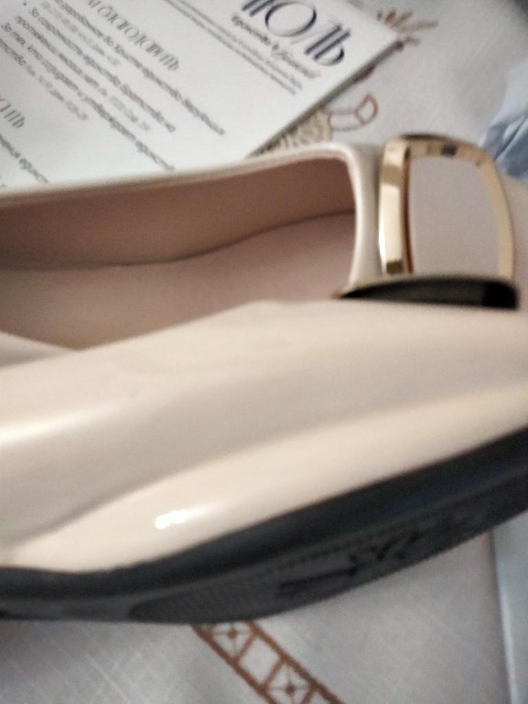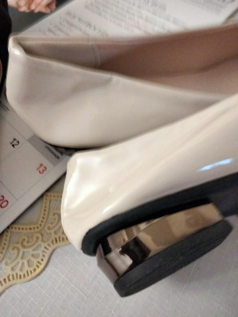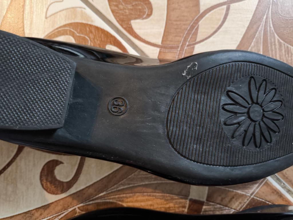 The shoes are deformed, have numerous creases, there is no information about the manufacturer, the material from which the packaging is made is a tight little polyethylene bag, in which the shoes lost their marketable appearance. There is no information either about the materials or about the manufacturer. Reliable information is patent leather