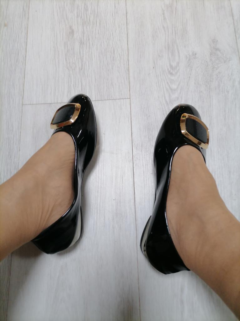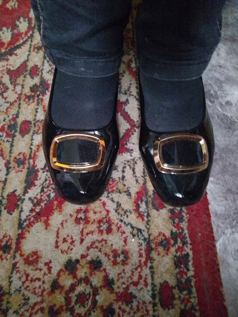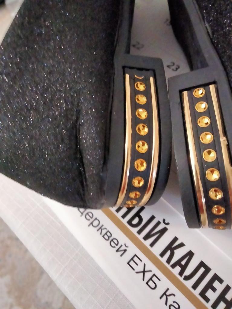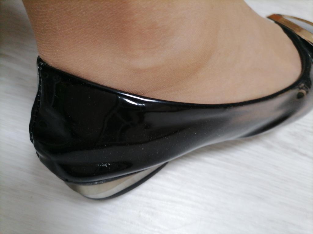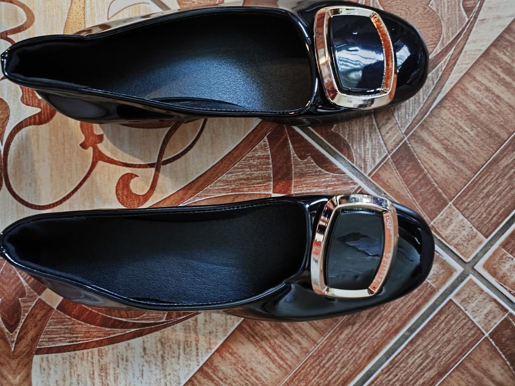 The shoes are deformed, have numerous creases, there is no information about the manufacturer, the material from which the packaging is made is a tight little polyethylene bag, in which the shoes lost their marketable appearance. There is no information either about the materials or about the manufacturer. Reliable information is patent leather