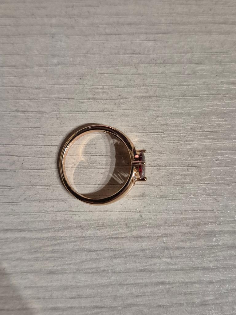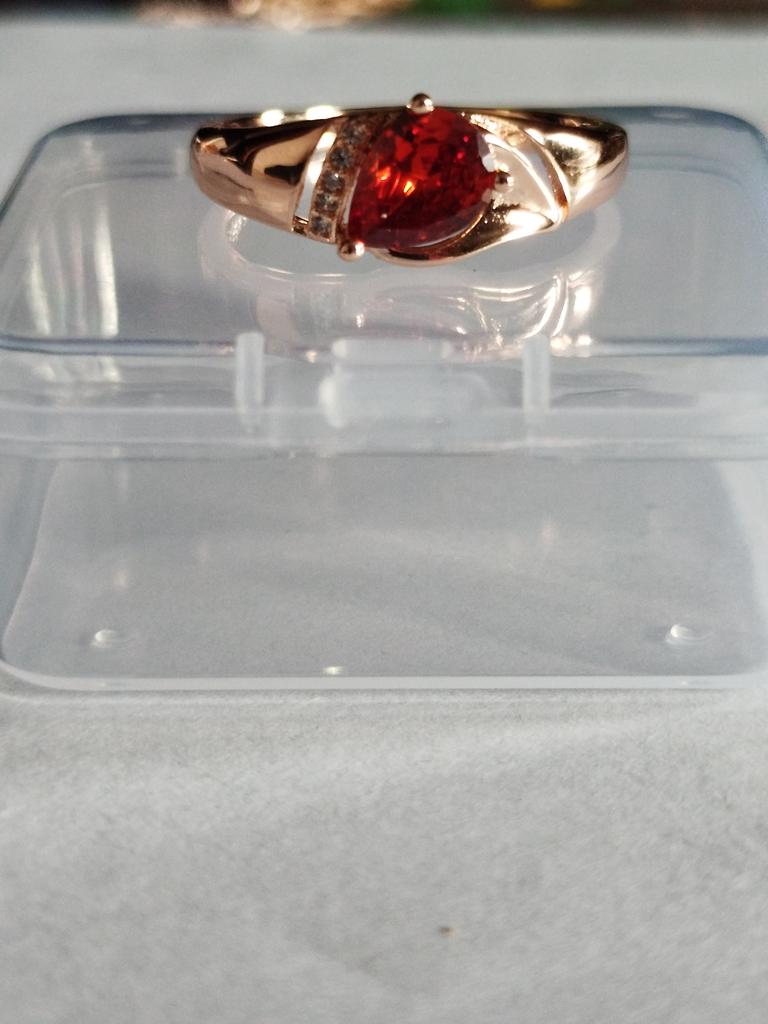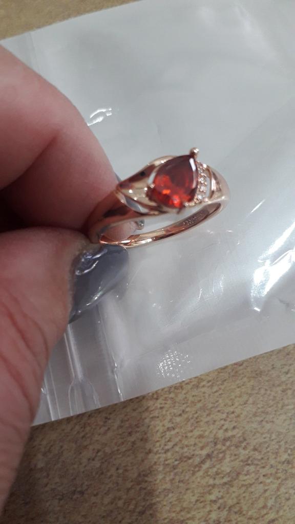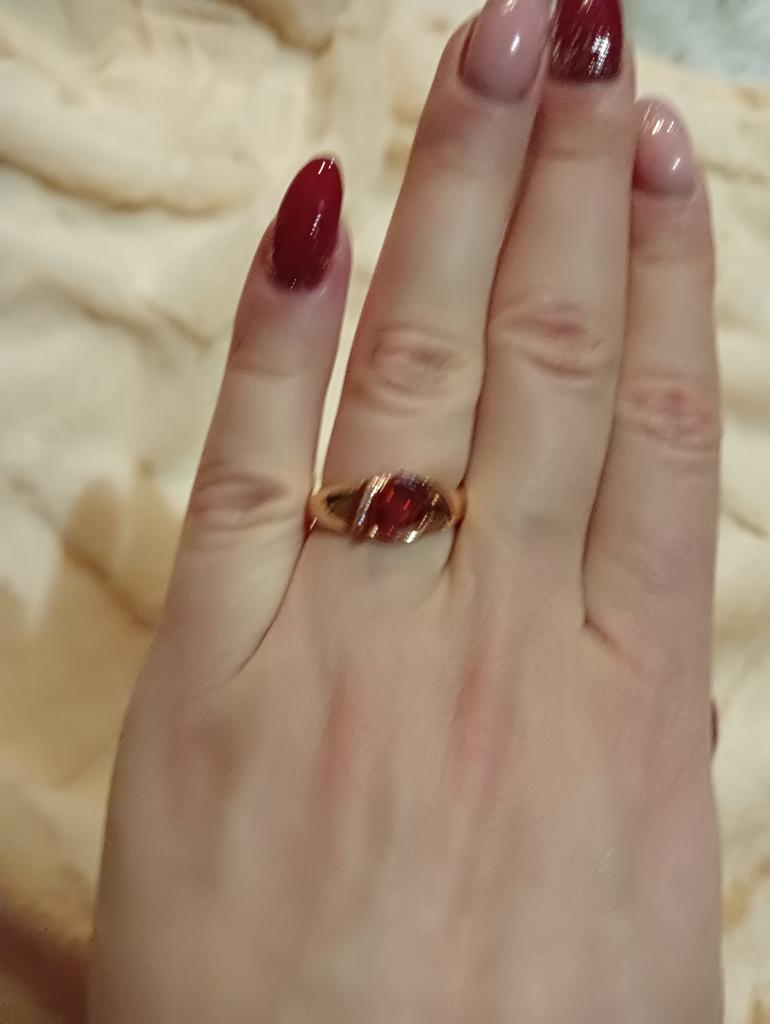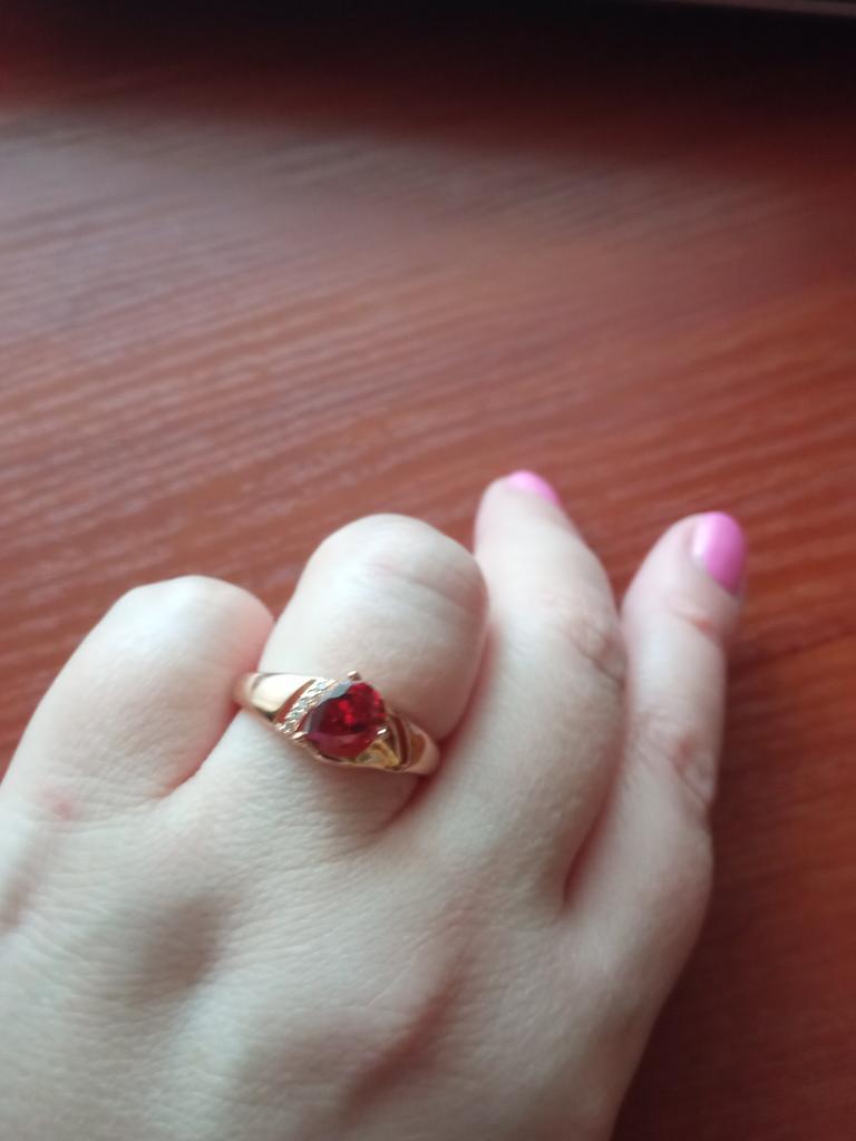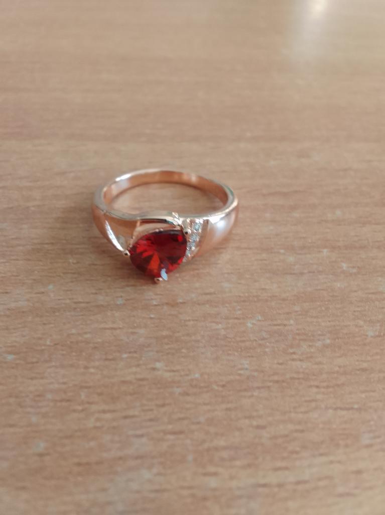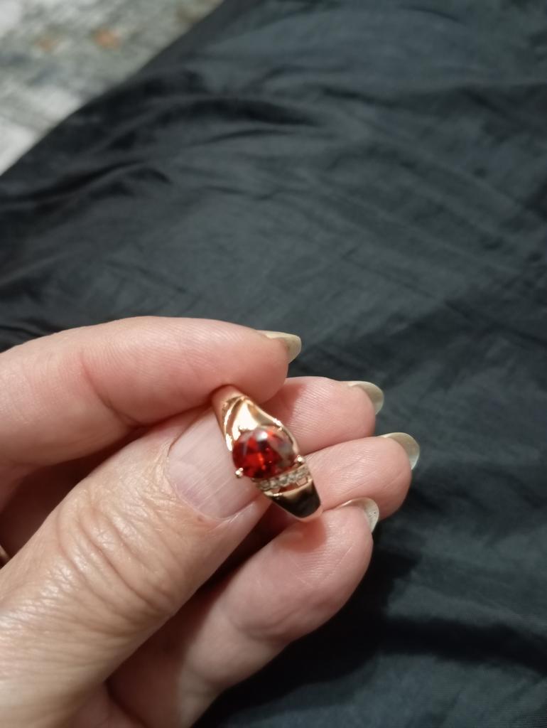 A very beautiful ring, like gold with a ruby. Gorgeous on the finger. I recommend