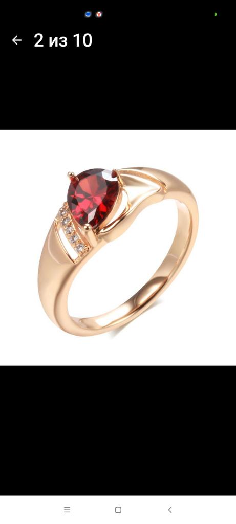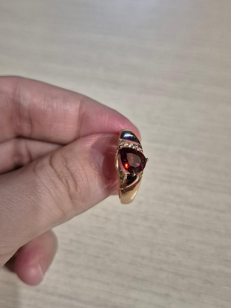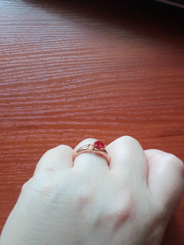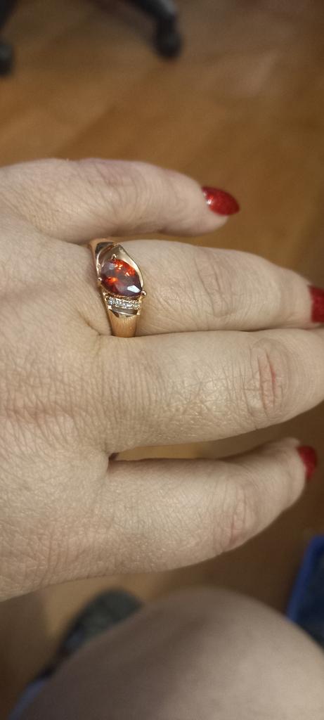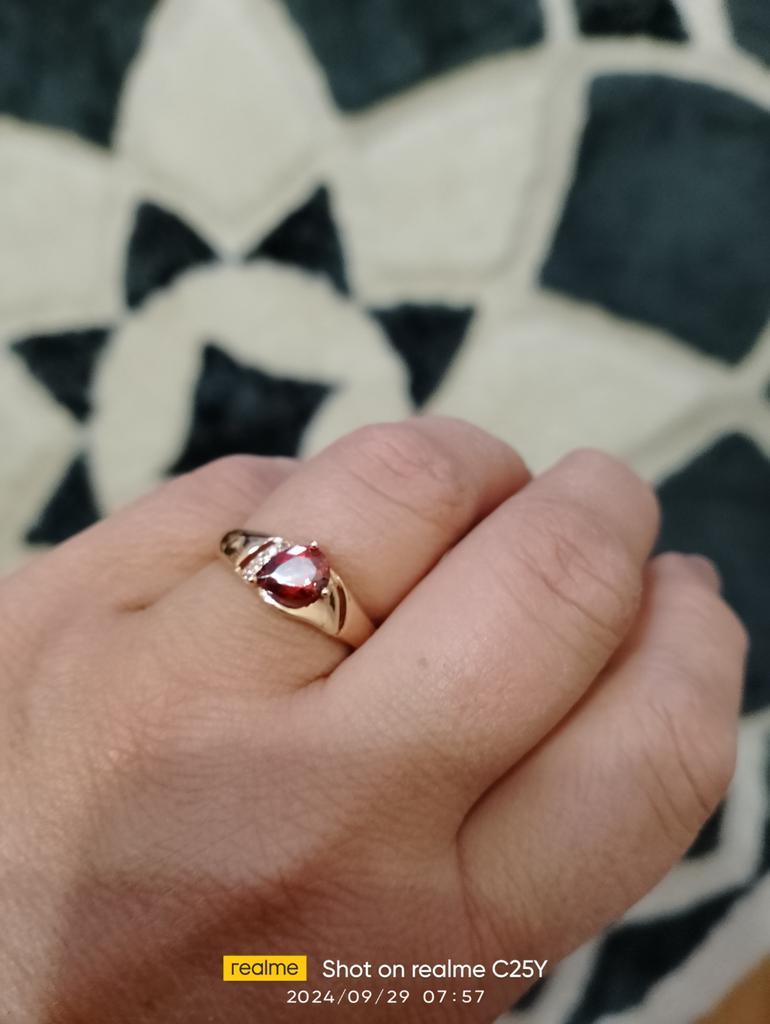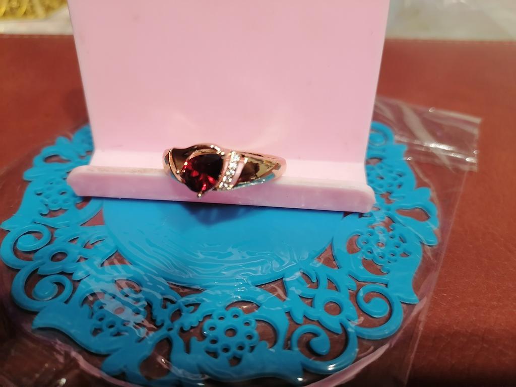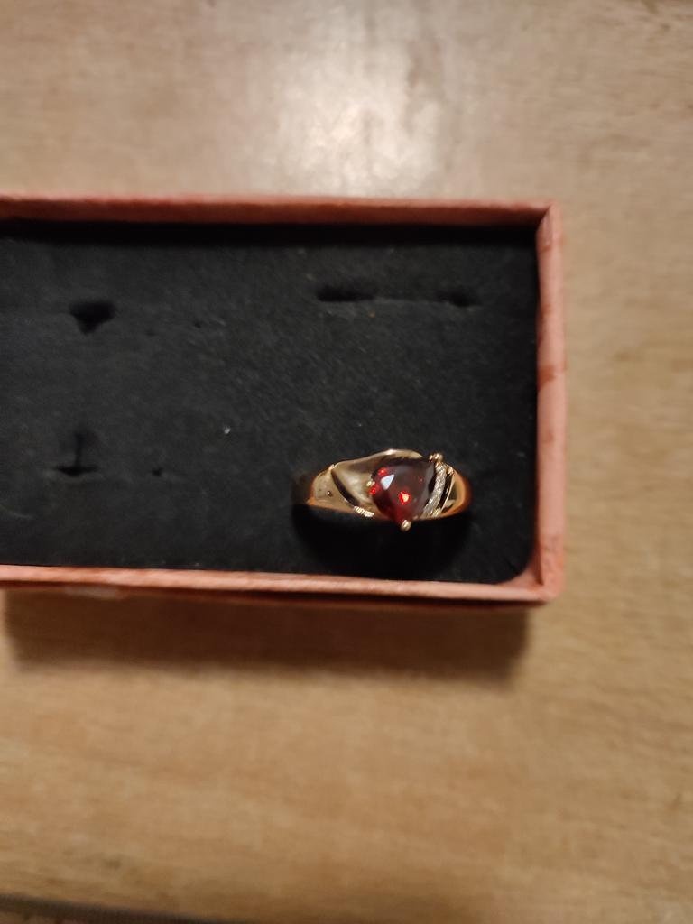 A very beautiful ring, like gold with a ruby. Gorgeous on the finger. I recommend
