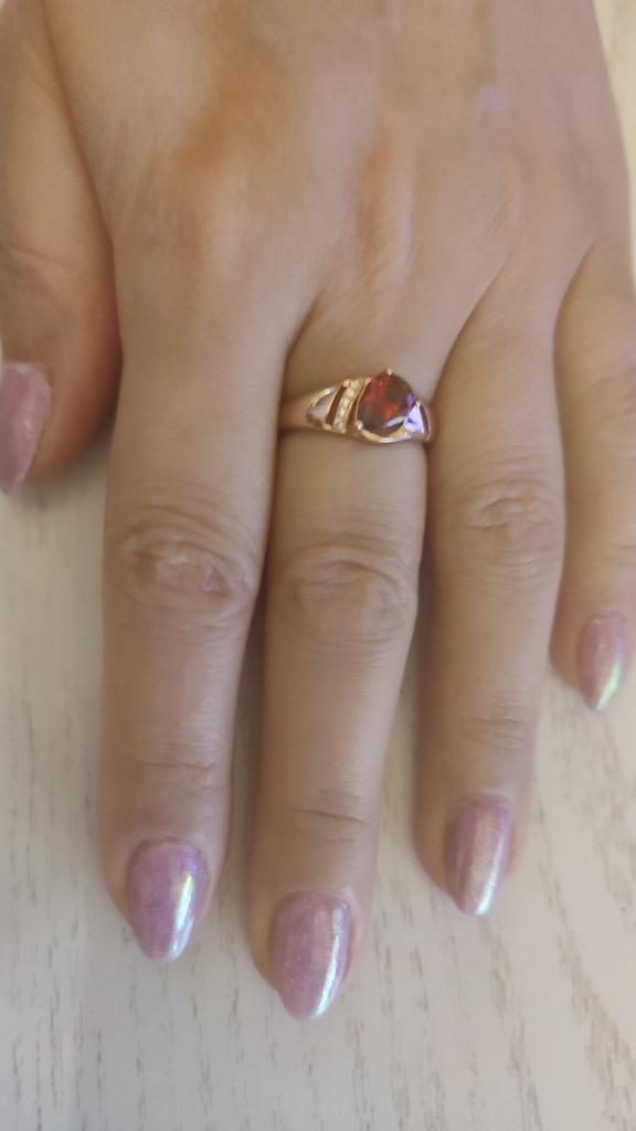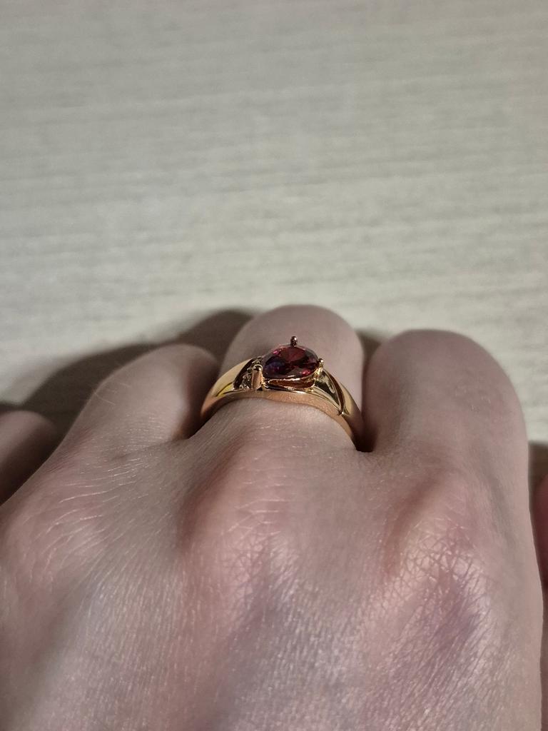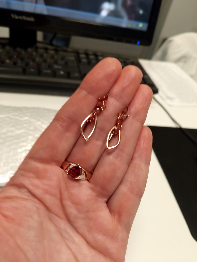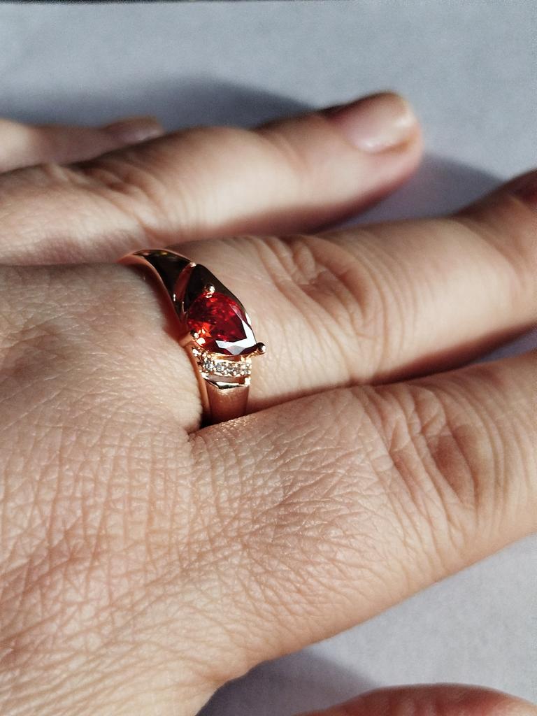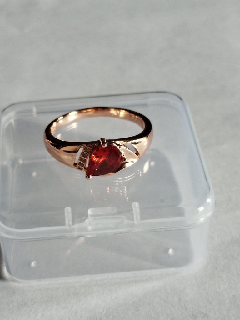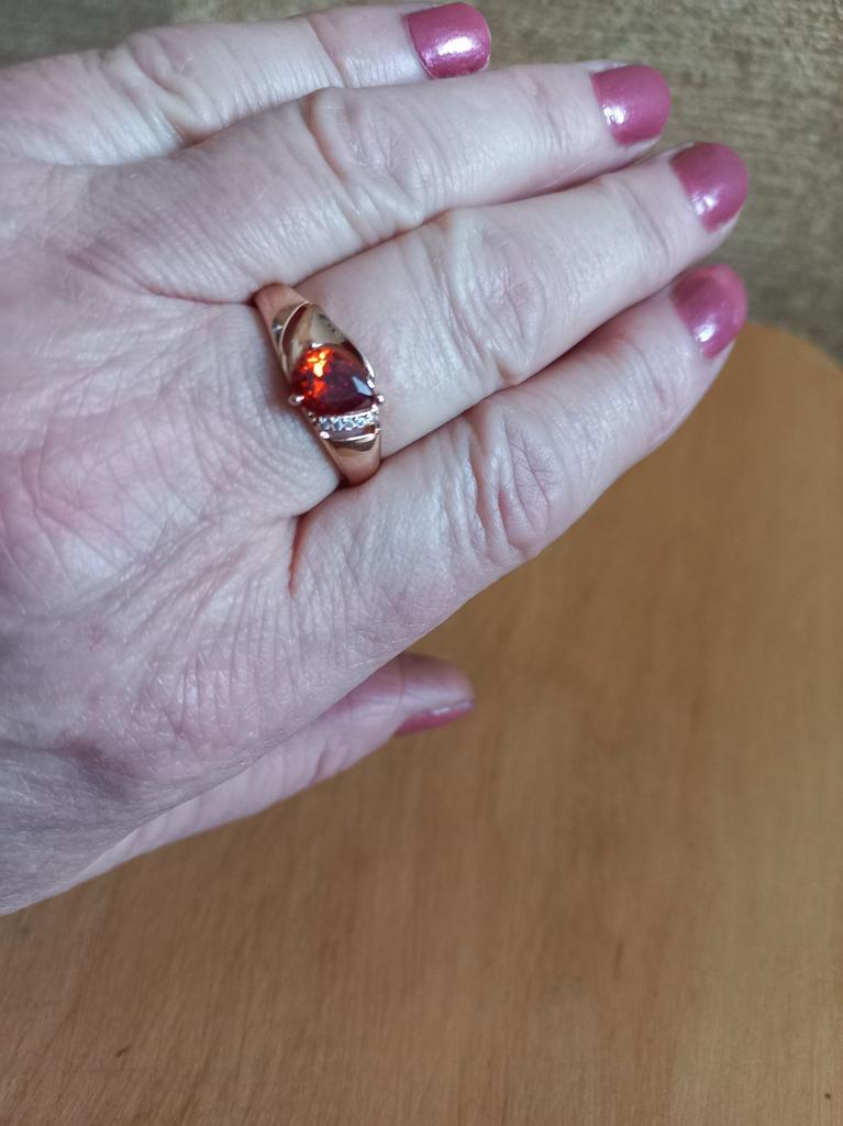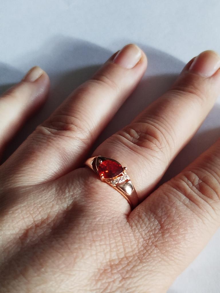 A very beautiful ring, like gold with a ruby. Gorgeous on the finger. I recommend