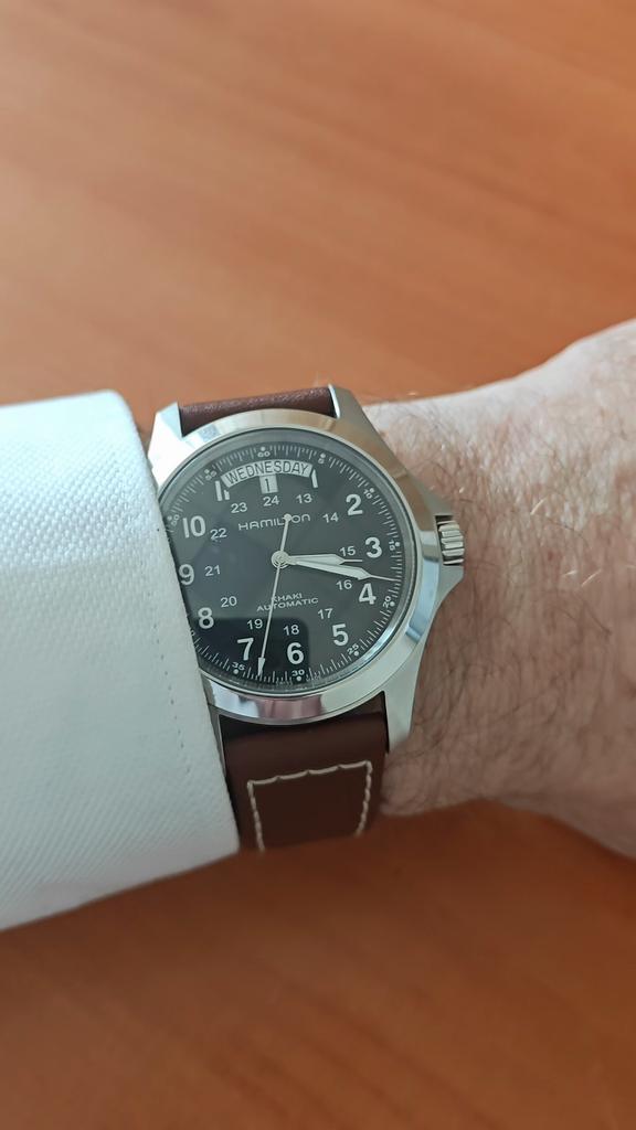 The watch is super, original. Very stylish and elegant due to its small size, at the same time you feel the field army style. The strap is stiff, but after a day of wearing it acquired the necessary curves and now sits comfortably.