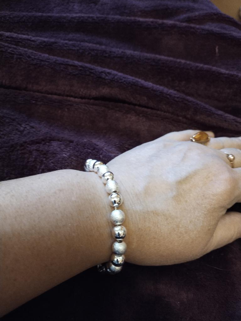 Ordered beads and a bracelet. Size 17 fits perfectly on the hand. It's a bit loose, but not too big. Again, there are doubts that this is really silver.