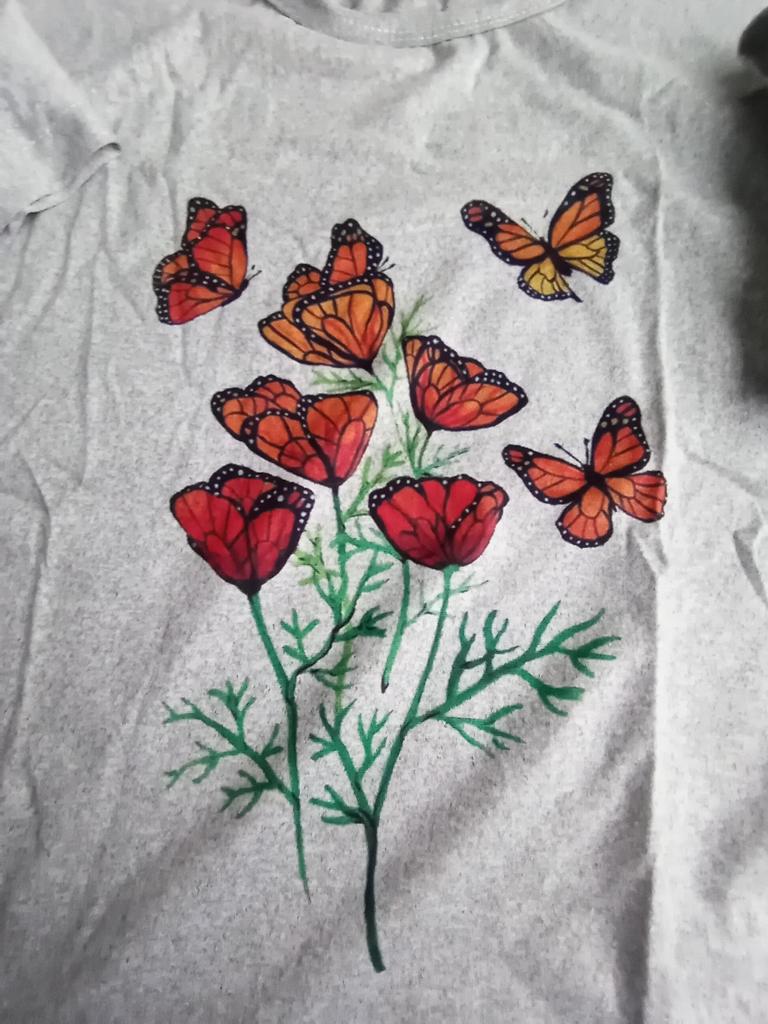 (Asian Size)Tee Top Watercolor Flower Style Trend 90s Fashion T Shirt Women Print Lady Female Graphic Clothing Casual Short Sleeve T-shirt