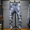 Trendy Spring/Summer Light Shadow Printing Broken Beggar Denim Pants High End Men's God Jeans Men