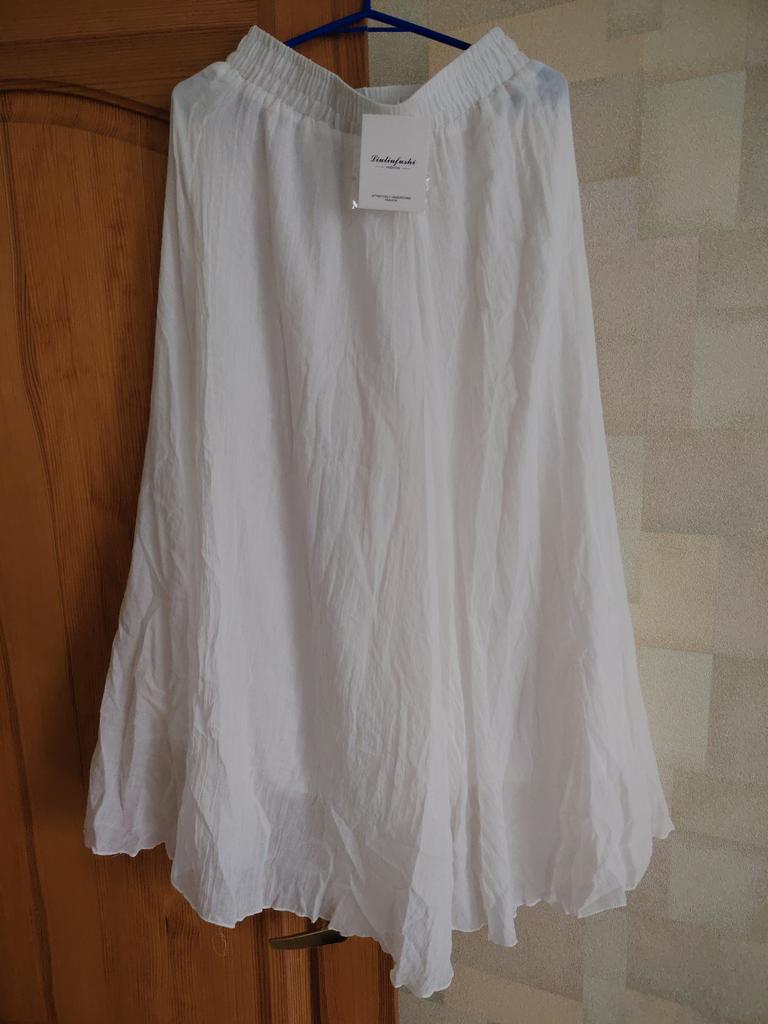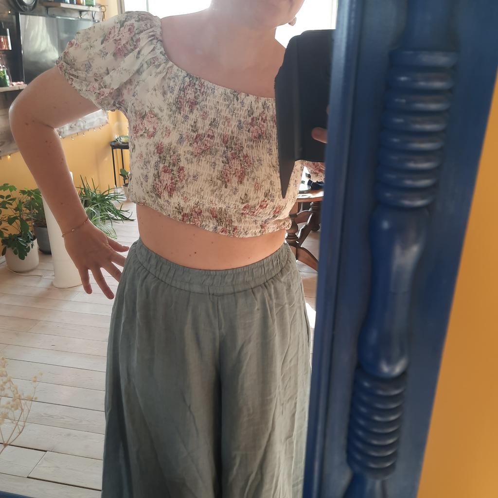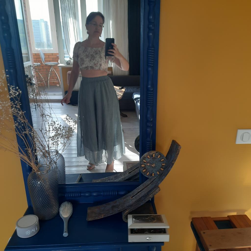 Lovely trousers - a skirt for the summer. The material is similar to cambric, the trousers are not see-through, lined with the same material, without pockets.