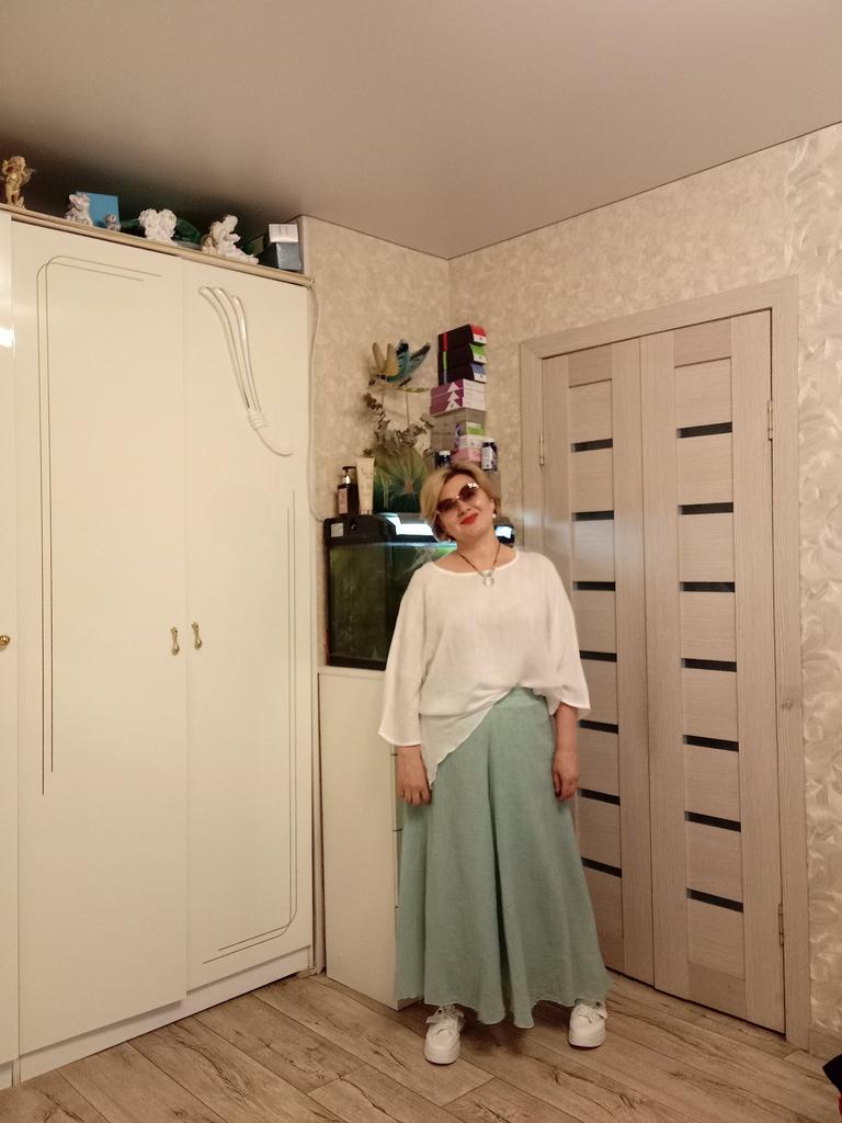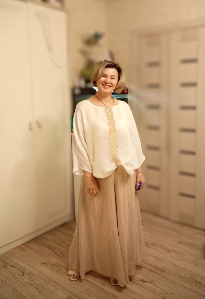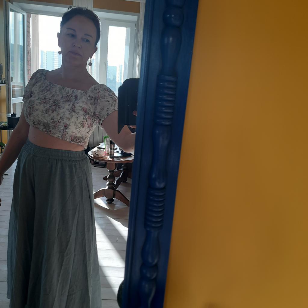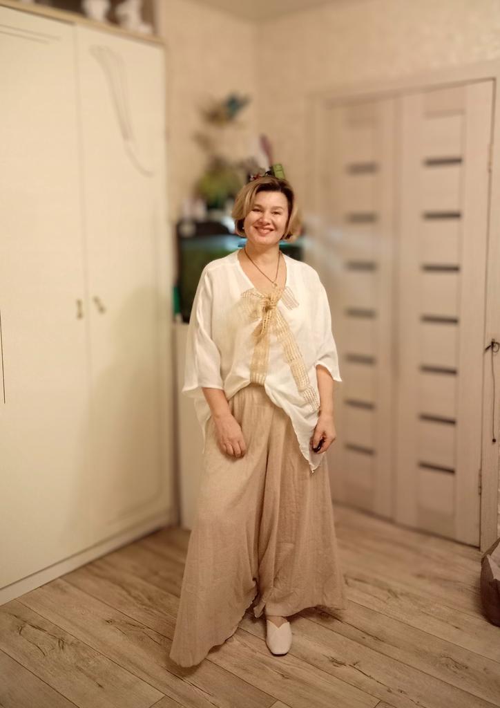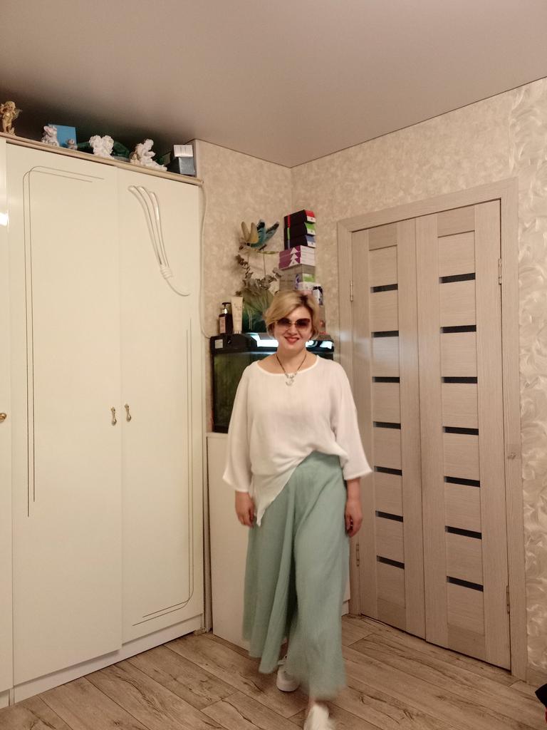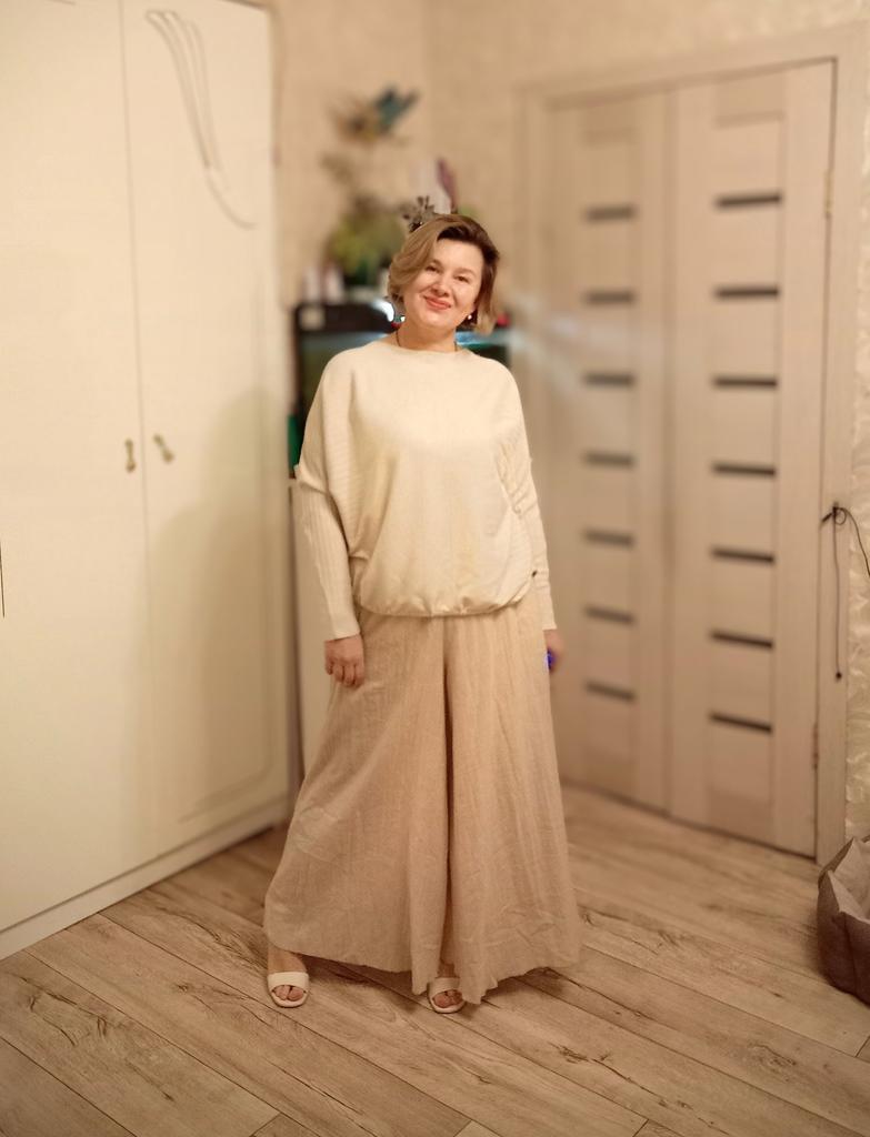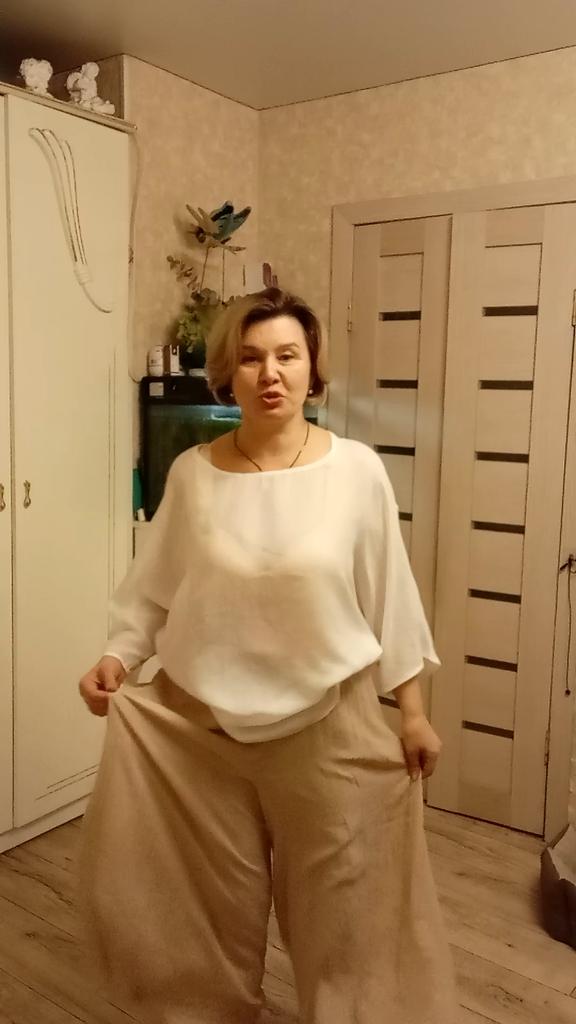 The trousers are wonderful, the color is beautiful, like in the photo. Light, airy.