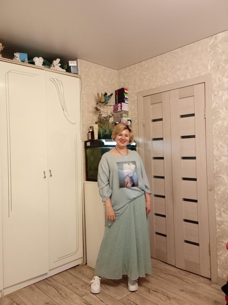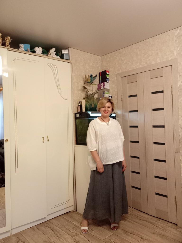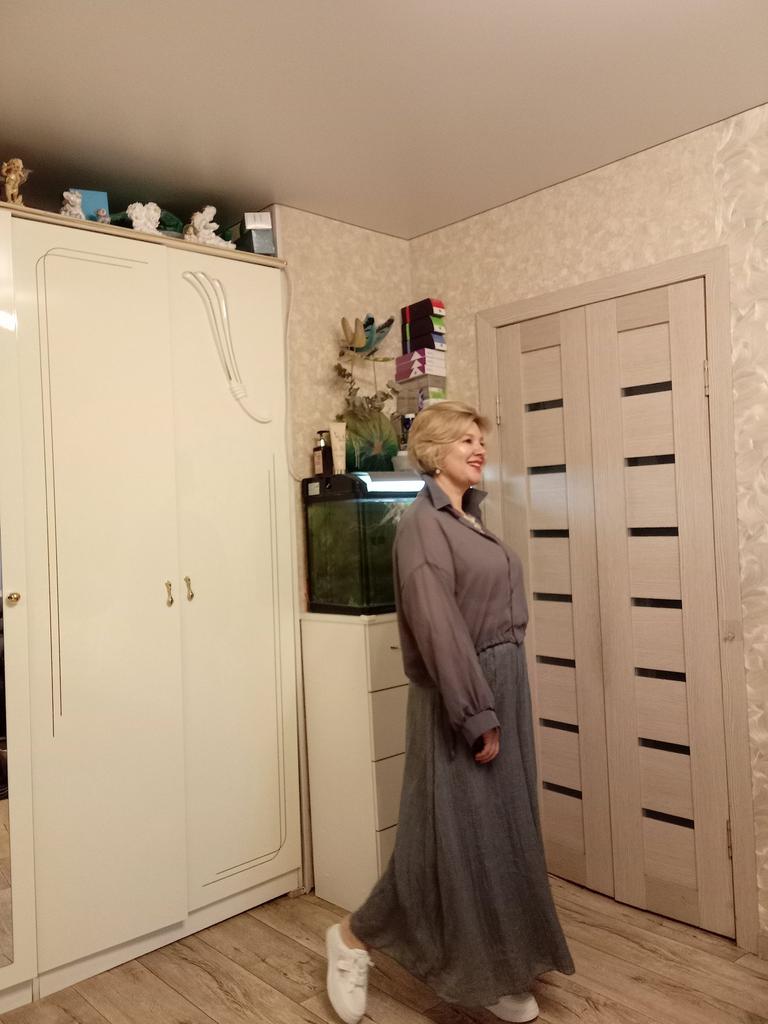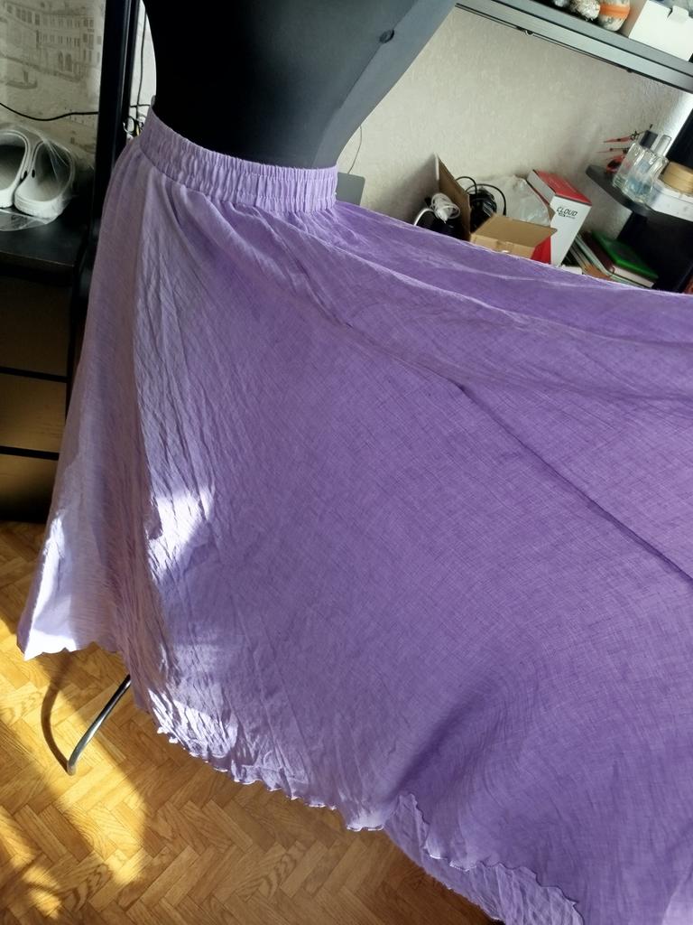 The order arrived in a group parcel. Everything is whole. The size fits, ankle length. Very soft and light material, two layers. The color is yellow, much brighter than in the photo. I'm happy with the purchase.