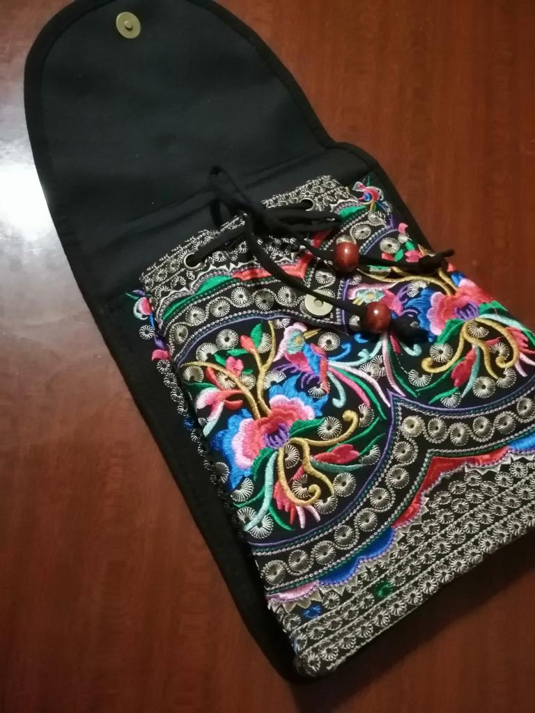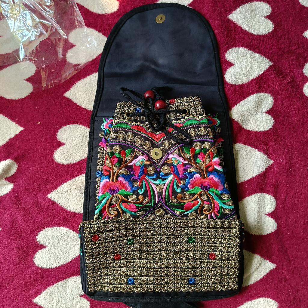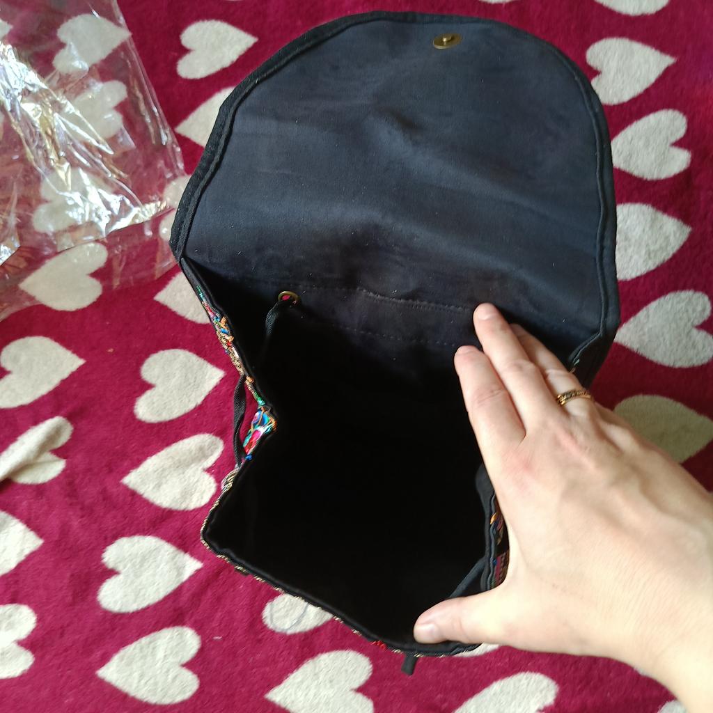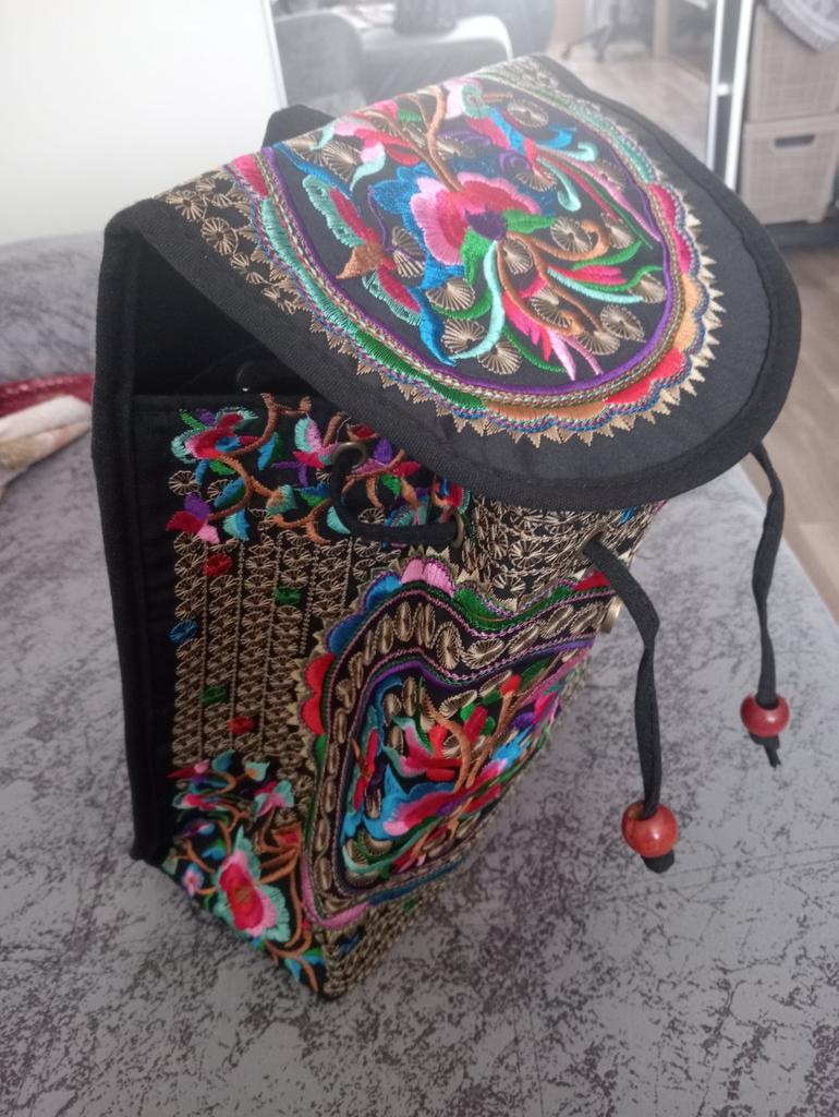 The backpack is very interesting. Beautiful, very neat, bright embroidery. There is one additional pocket inside. Decorative wooden beads on strings. I recommend.