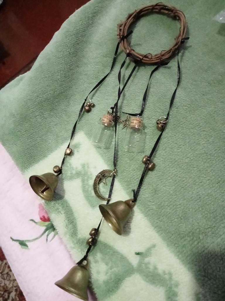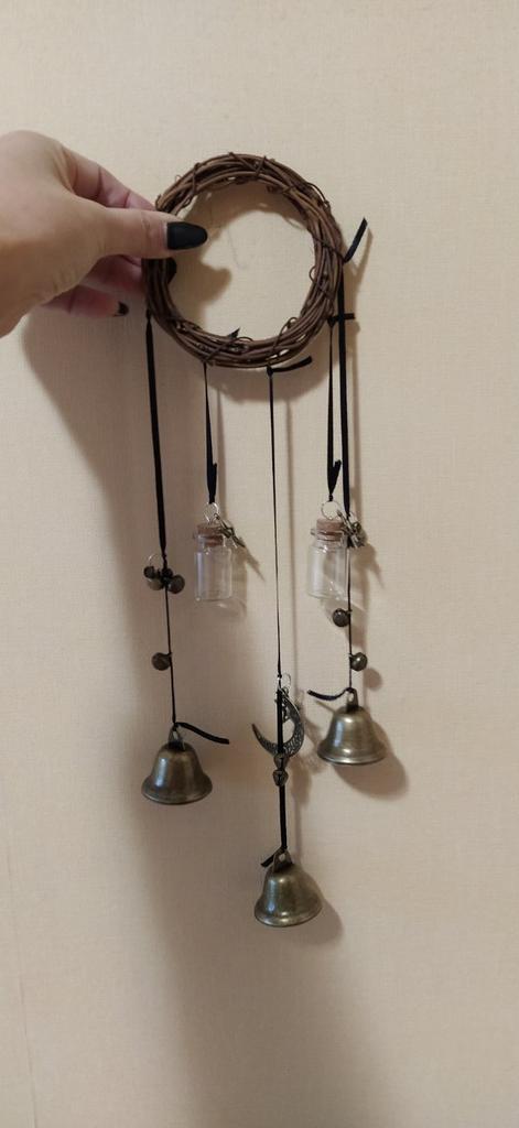Rattan Ring Witch Bells Protection Door Witch Wind Chimes Wreath Handmade Hanging Magic Wind Chimes for Home Door Home Decor