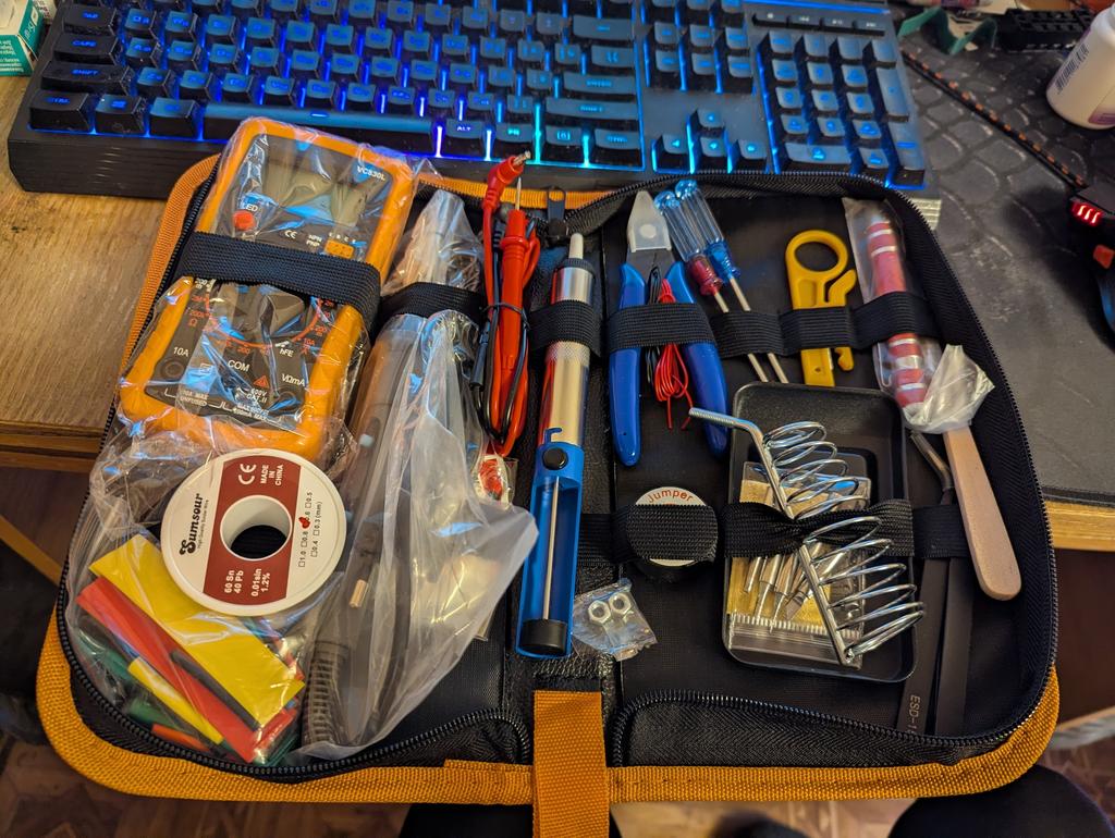 Good set, has everything you need, soldering iron is still in stock, I'm using the old one for now