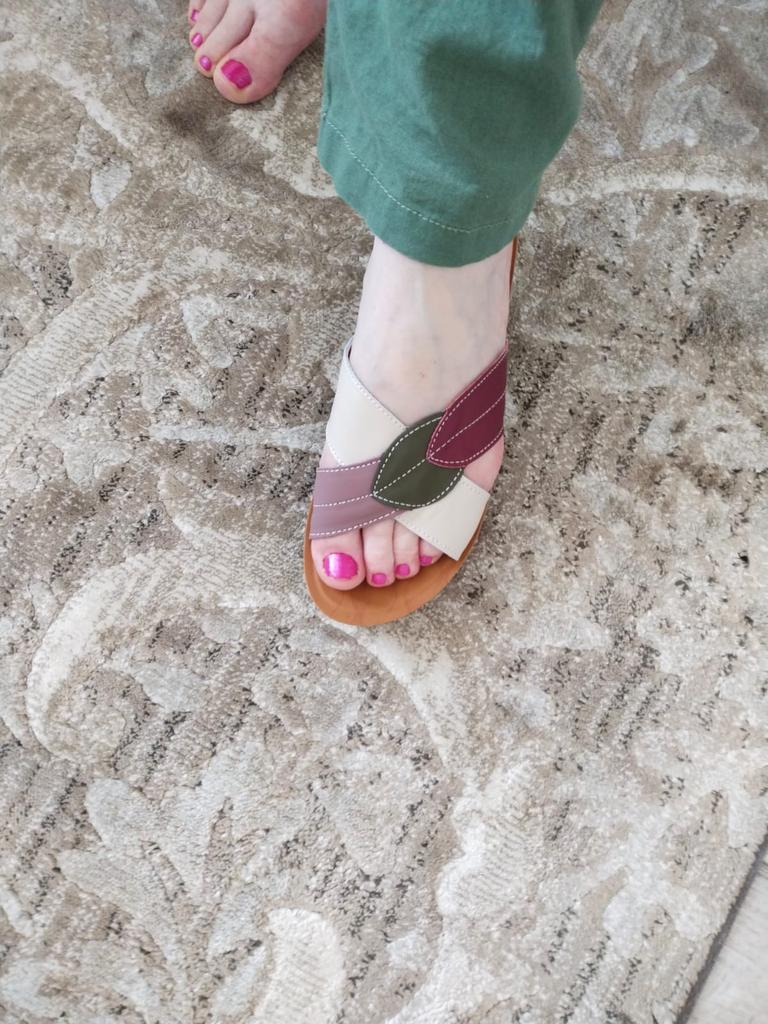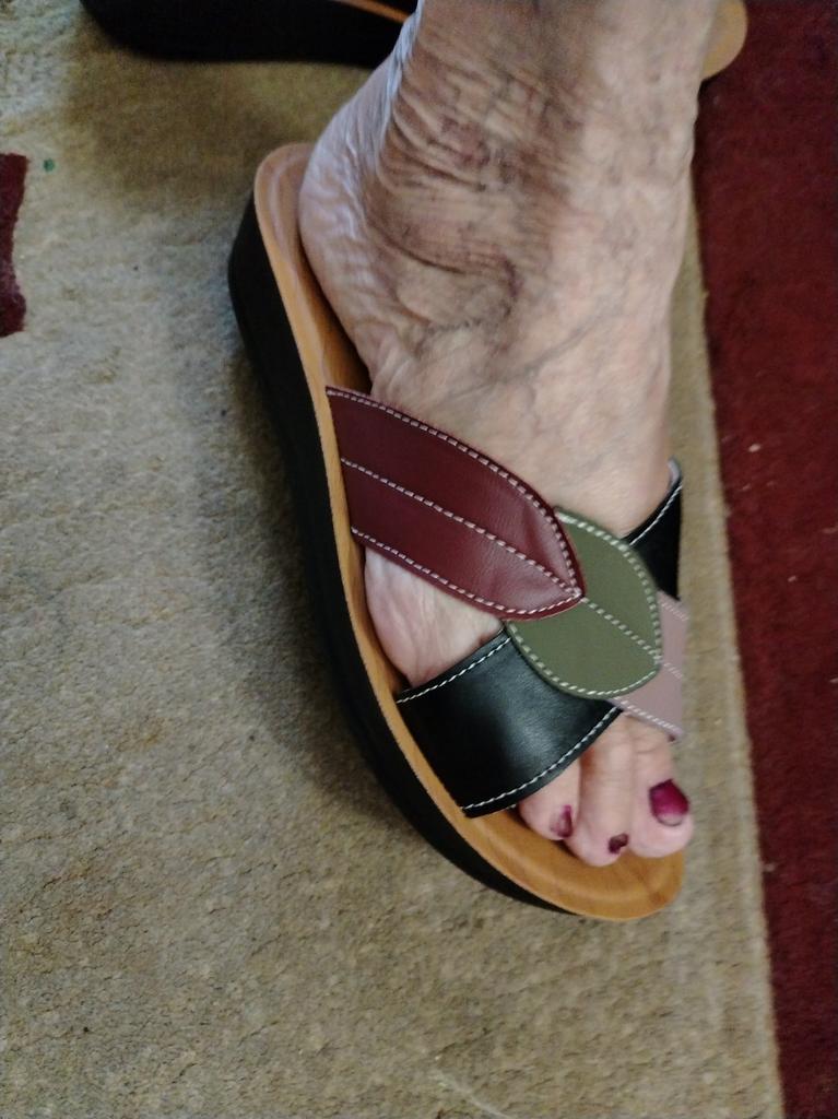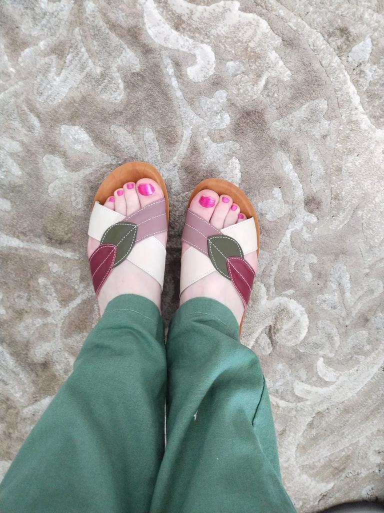 The flip flops are cute, but for a very narrow foot, I wear 37, ordered 38, not very comfortable, there is nothing natural in them, so they do not stretch. I will give them to my sister.