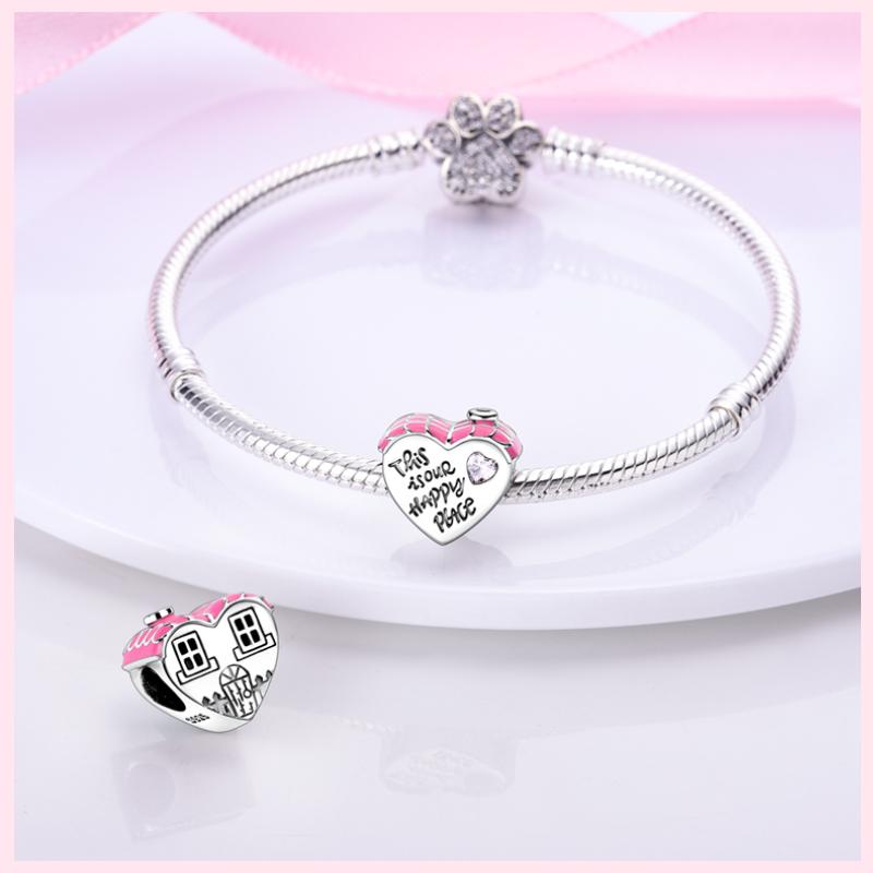 100% 925 Sterling Silver Bear Animals Butterfly Flower Love Heart Pink Charms Fit Bracelet Diy Jewelry Making