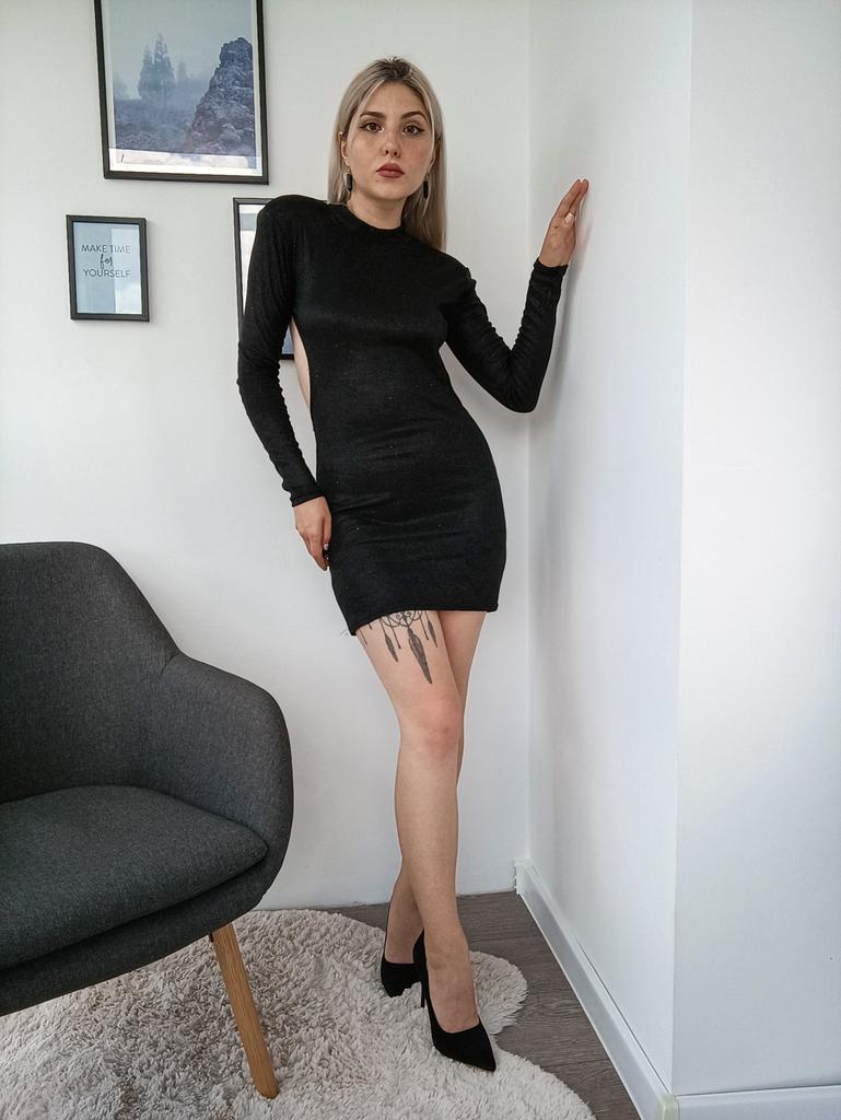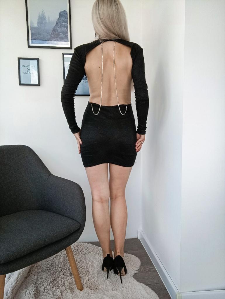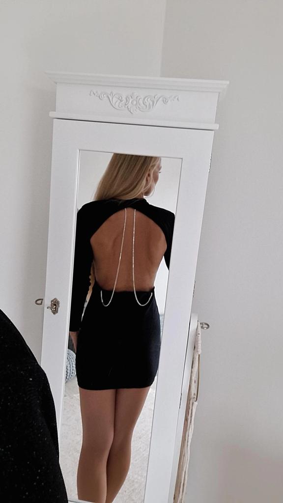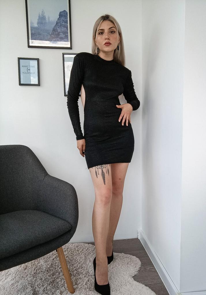 * little black dress with back dรฉcolletรฉ* ๐ฅ๐๐ถ๐ฒ๐ณ๐ฒ๐ฟ๐๐ฒ๐ถ๐ About 3 weeks ๐ฅ๐๐ถ๐ฒ๐ณ๐ฒ๐ฟ๐๐บ๐ณ๐ฎ๐ป๐ด The delivery includes 1 dress in the corresponding color and size. The dress is available in 3 different colors in sizes S to XL. I ordered the dress in size M in black. I wear size 36 to 38. I weigh 63 kg over 172 cm. Cup size 75D. The dress fits me ok, it could even be a bit longer for my taste. I find that even though it's stretchy, it doesn't fit the body as well. ๐ฅ๐ค๐๐ฎ๐น๐ถ๐รค๐ The dress is not really opaque. But it's very stretchy. A special eye-catcher is the back neckline with the chains... you should wear your hair closed here so that your back comes into its own. The dress also has shoulder pads that are fixed. It doesn't smell like chemicals. For material composition : 65% cotton and 35% polyester The dress has some glitter threads worked into it, but I don't find the fabric that pleasant on the skin. ๐ฅ๐๐ฎ๐๐ถ๐ Sexy dress with a great back neckline that you can order in your own size. It's a pity that it's a bit too short for me and always slides up when I walk. In addition, the chains often get tangled in the fabric.