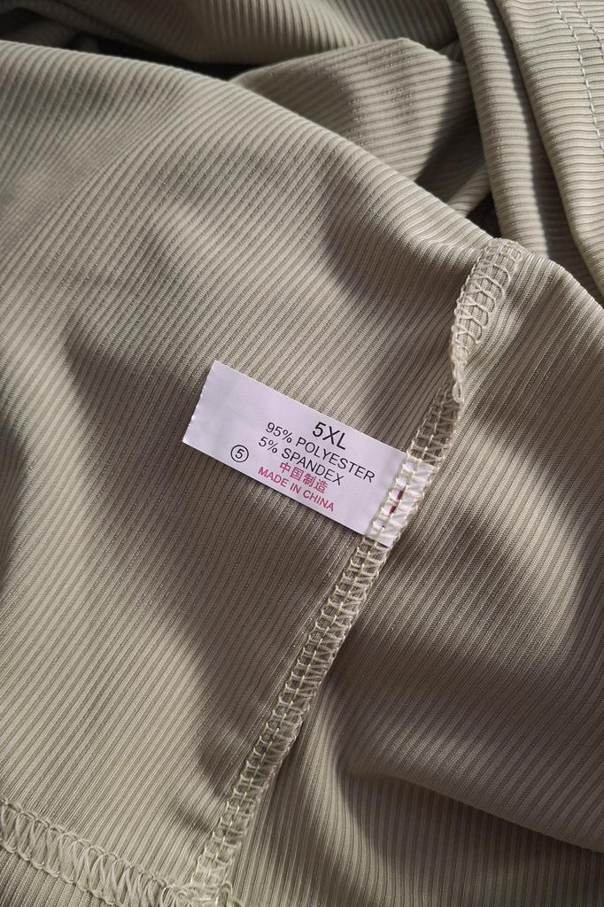Synthetic, beautiful color. Correct seams, but not so open at the neck. Pleasant on the body, let's see how the summer will be. For size 48, it's wide, but that's how I wanted it.