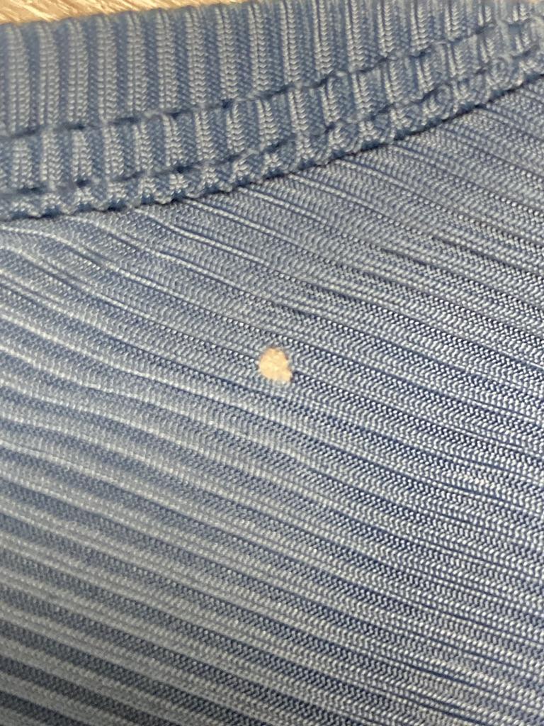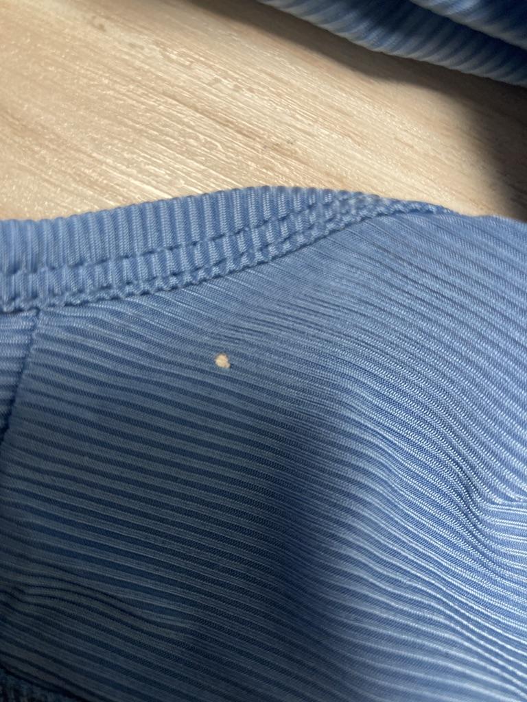 Very/very small size and also a spot on the front. "Glass" fabric. I do not advise.