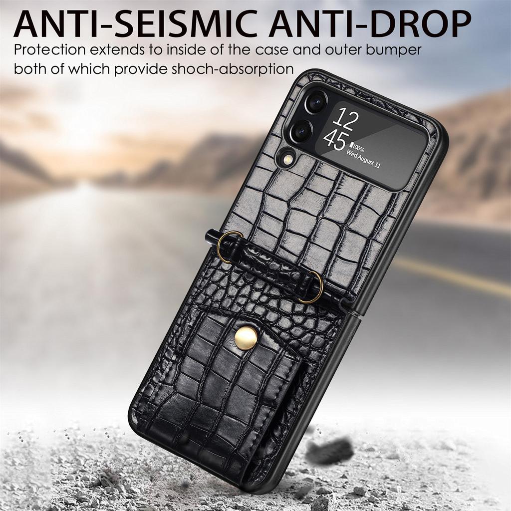 Wallet Phone Bag Crocodile Leather Case For Samsung Galaxy Z Flip4 5g Flip 4 Zflip4 Non -Slip Card Slot Full Protection Cover