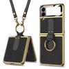 For Samsung Galaxy Z Flip 3 5g Case Original Case Luxury Plating Leather Strap Ring Stand Hard Cover For Samsung Z Flip 3 5g