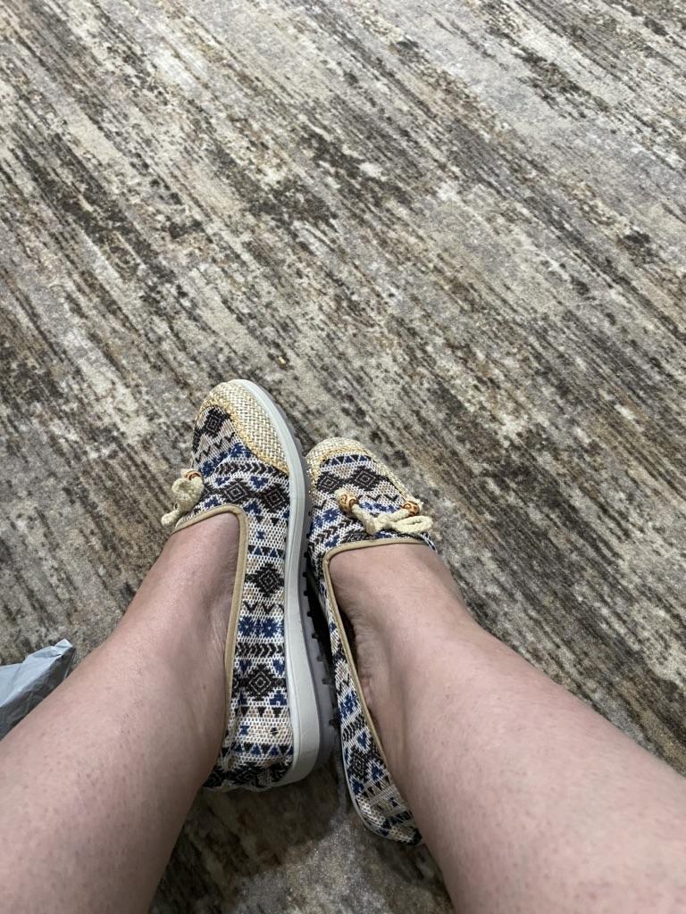 Wonderful summer shoes. Very light, with a good sole. Machine washable. I will order another pair.