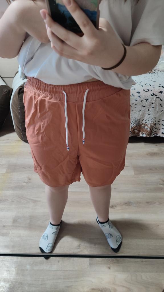 The shorts are cool, I wanted them to be below the knee, but I was wrong 😞 The fabric is still see-through