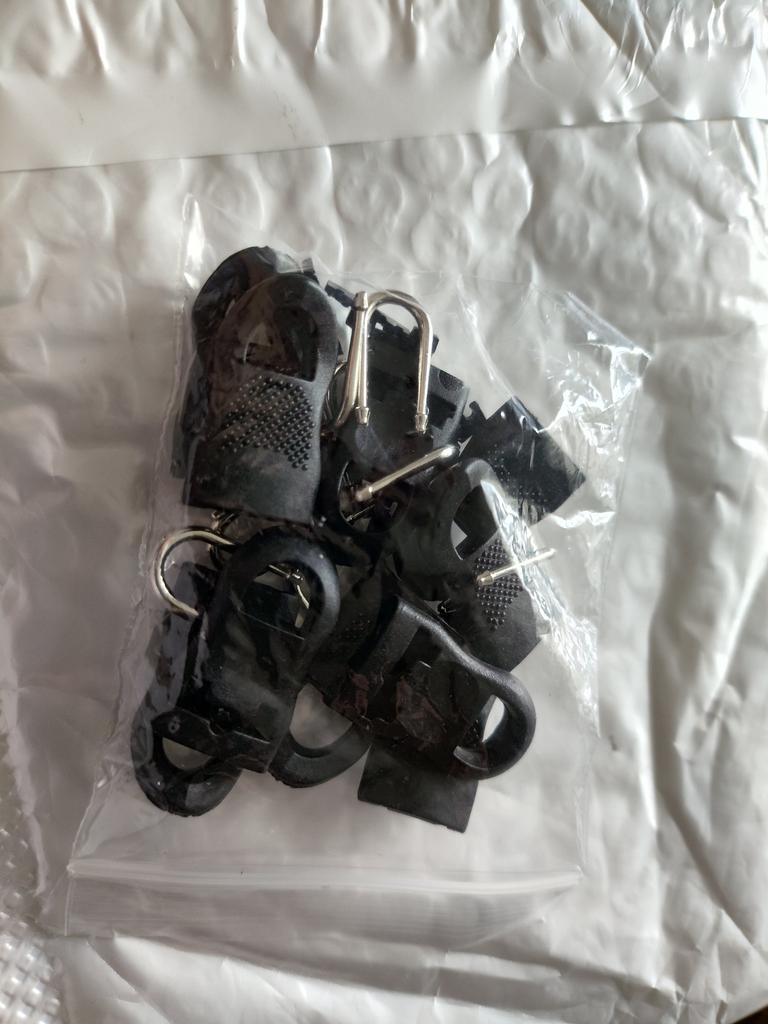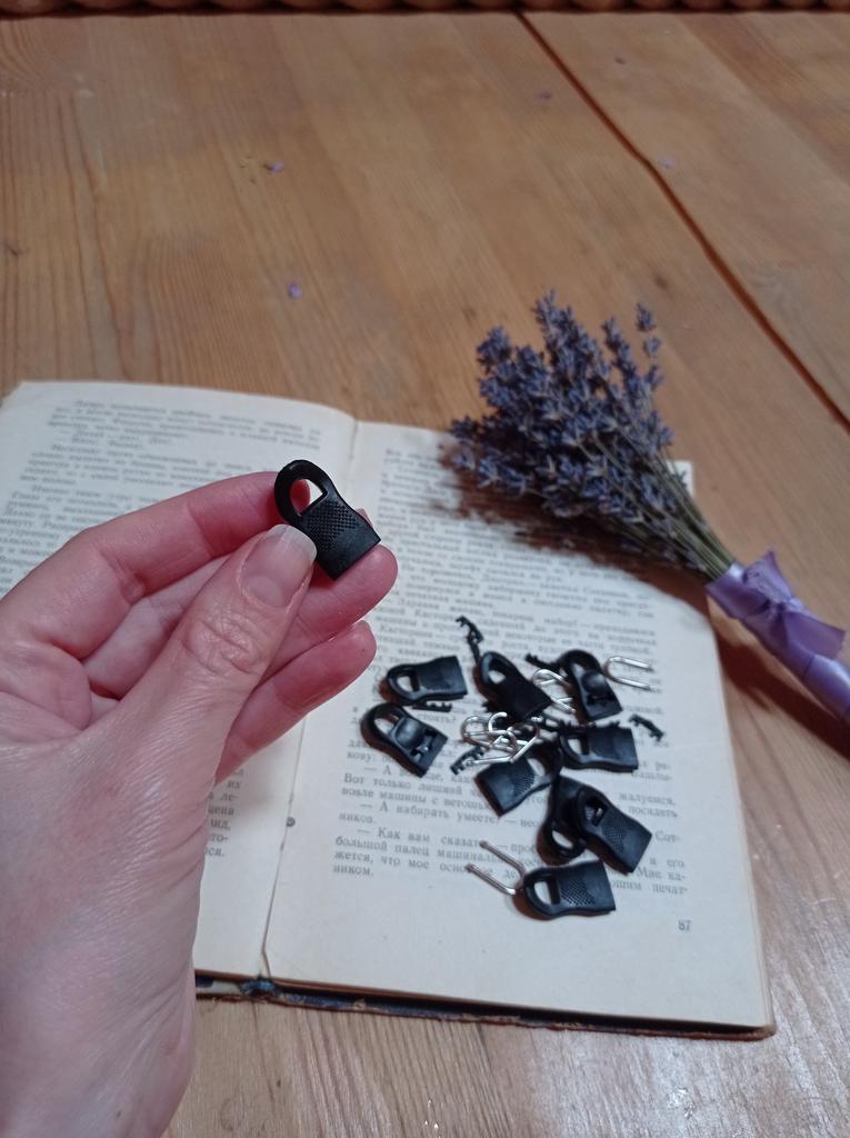 The parcel went a little more than a month. Packing is standard. The zipper heads themselves are strong, made of high-quality plastic and a strong metal loop, apparently made of medical steel. Has a curved tail for a better grip. Nowhere in the product card are the sizes of these heads. Ordered S. Large enough. In the assembled state, the length is 3.5 cm, the width is 1.4 cm. I thought that they would be smaller. And yes, the product is of good quality. Ideal for zipper repair. I recommend.