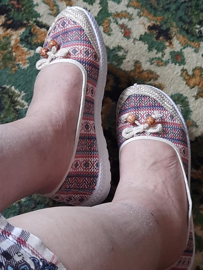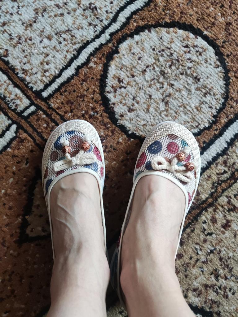 Very comfortable, light shoes, with a soft sole, I'm already buying a second pair, only a different color now, the quality is not bad, they wear well. For my 37, I took size 38, a little wide. For the summer, fabric shoes are just right for every day, I really like them.