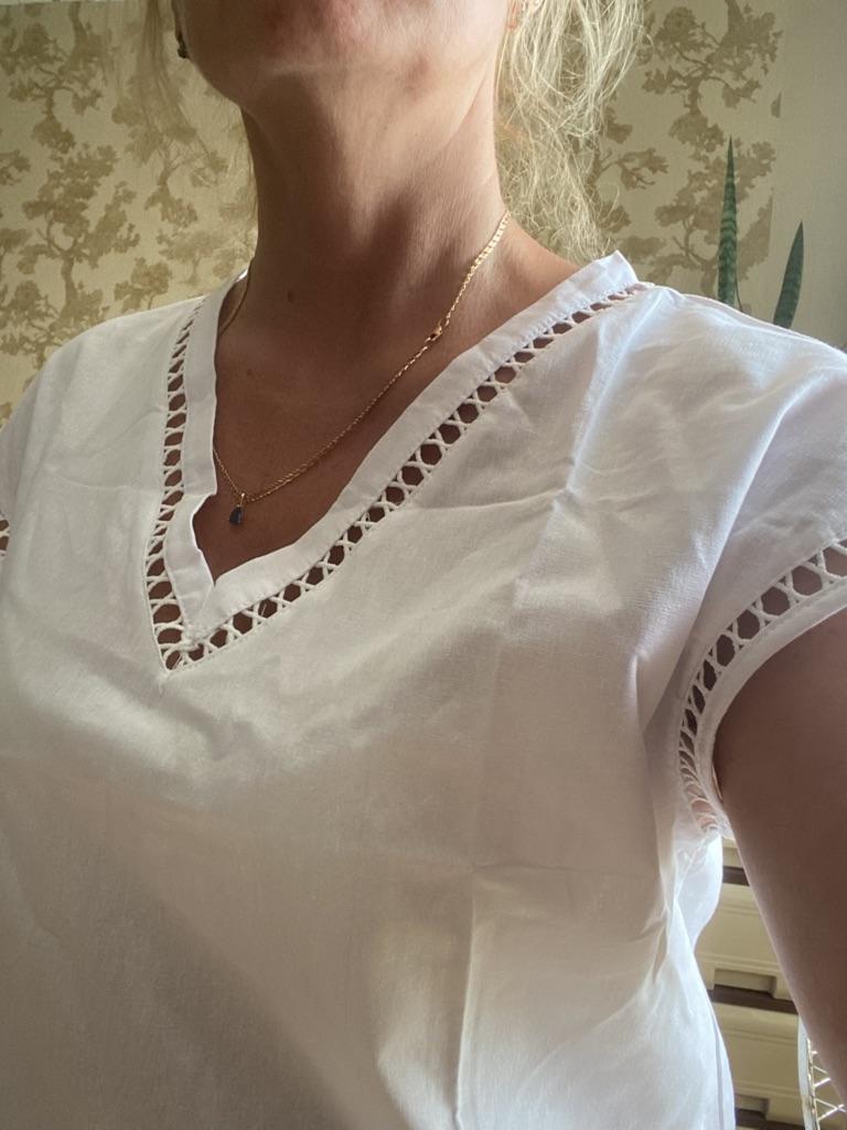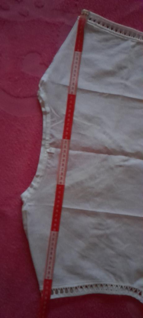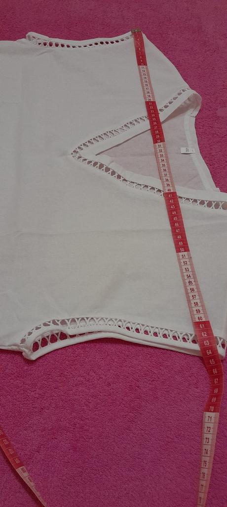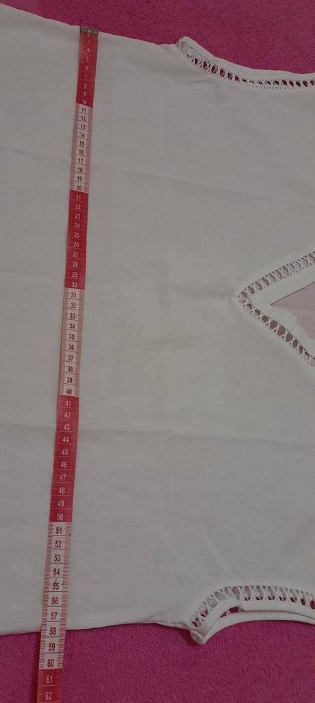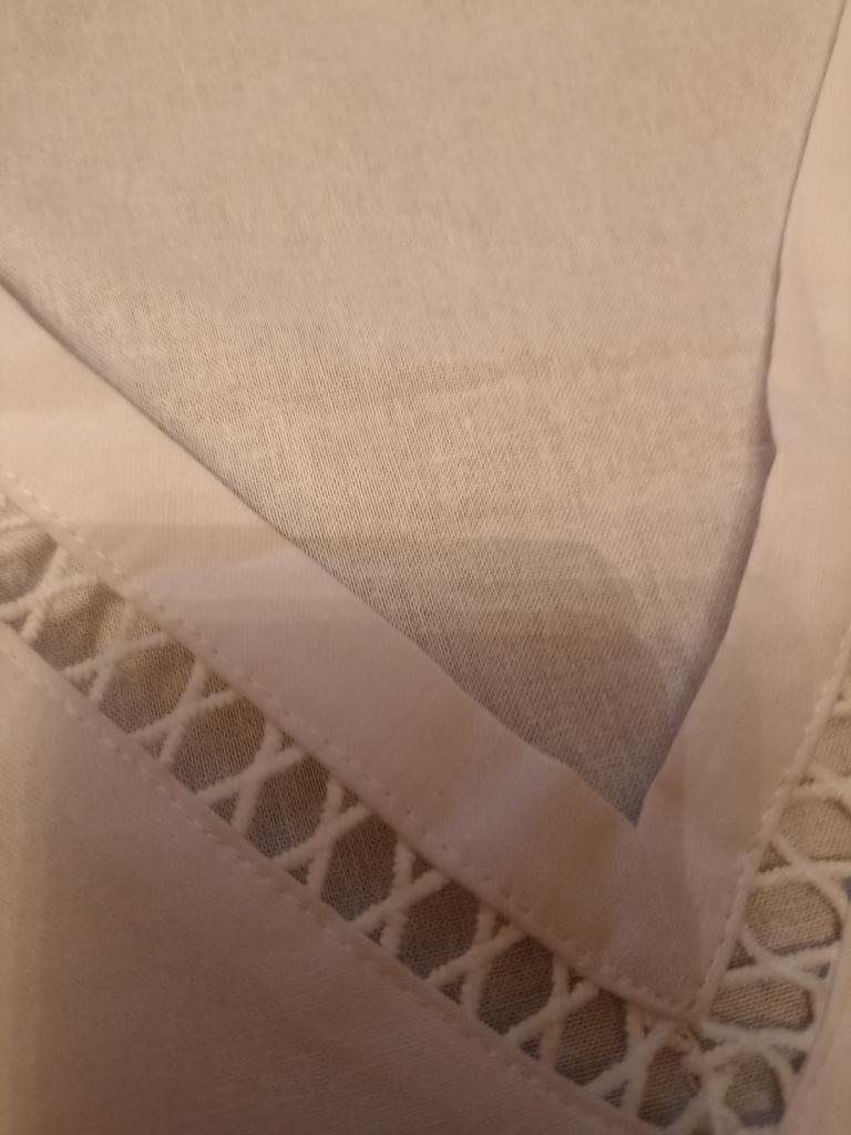 The blouse is beautiful, cotton. It's 2 cm smaller than stated. Exactly that much was missing for a perfect fit on waist 104, hips 110.