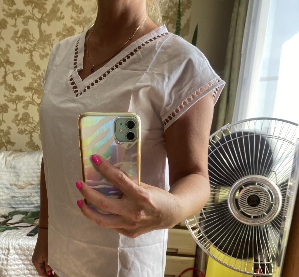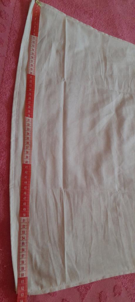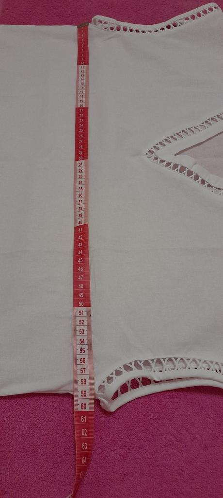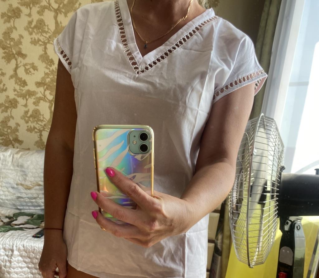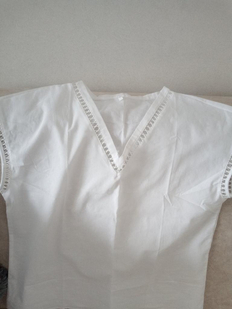The blouse is beautiful, cotton. It's 2 cm smaller than stated. Exactly that much was missing for a perfect fit on waist 104, hips 110.