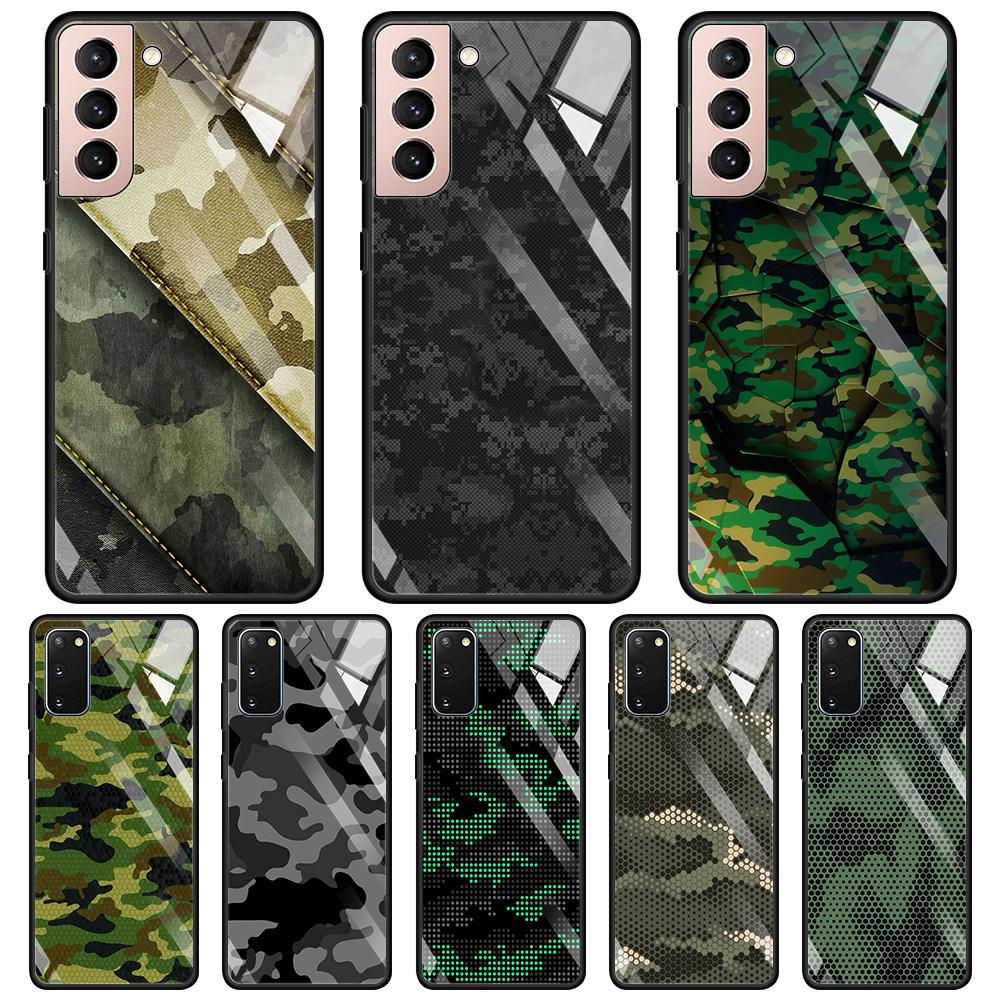 Camouflage Pattern Camo Military Army Glass Case For Samsung Galaxy S21 S20 Ultra S10 Plus Lite S20fe 5g S10e S9 S8 Shell Funda