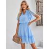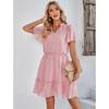 Fresh Sweet V-neck Solid Color Ruffle Dress Women's 2023 Summer Leisure Women New High Fashion Elegant Commuting Beach Dresses