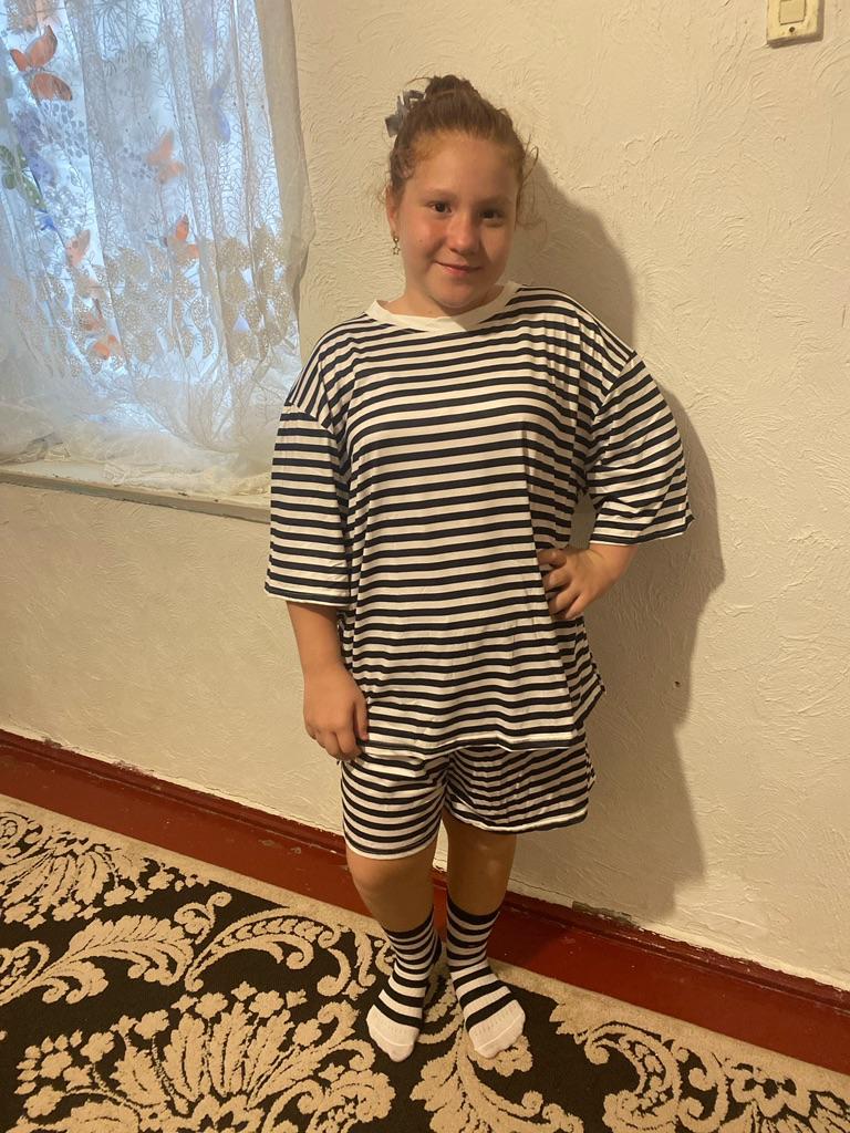 The costume itself is cute, the size chart is correct, but the stripes on the shorts don't match at the front seam, and the cut of the shorts is strange. The SP returned half of the cost, thank you.