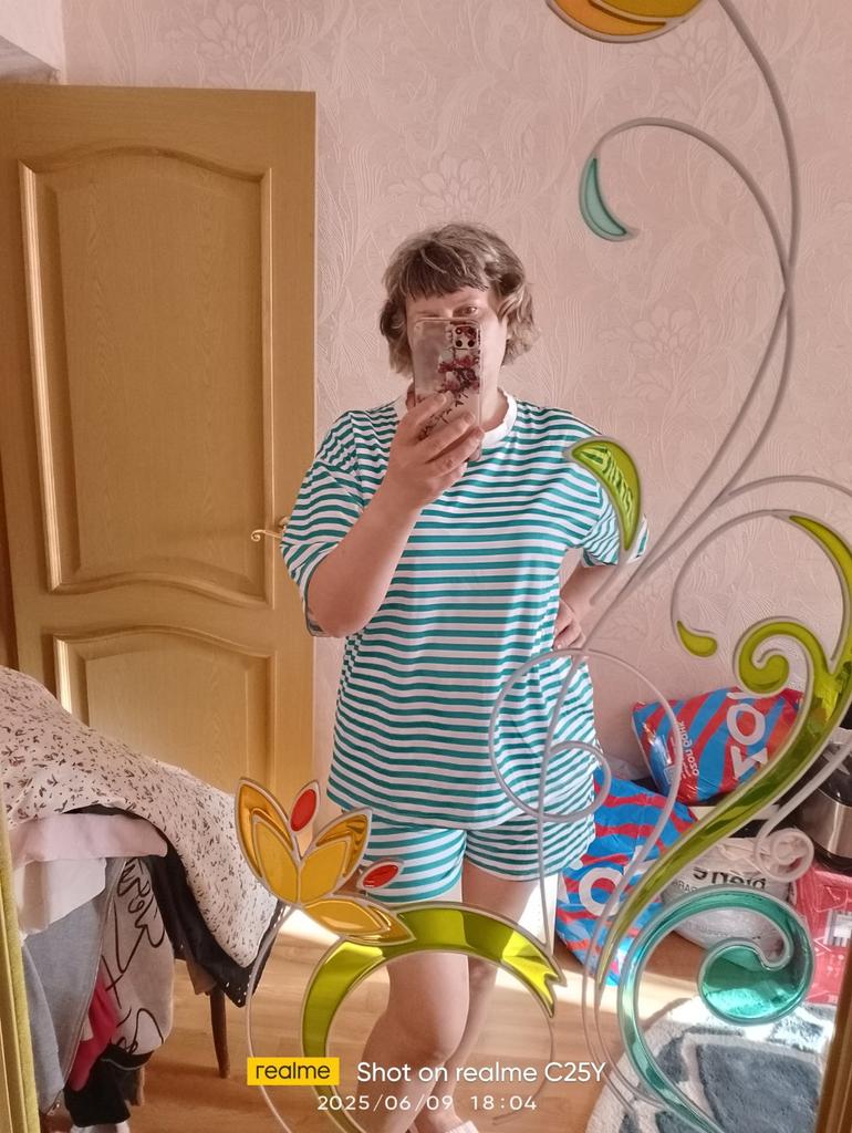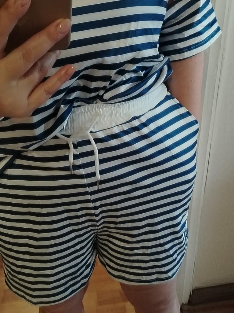 The size of the shorts does not correspond to the size: T-shirts, T-shirt, huge shorts, tiny.