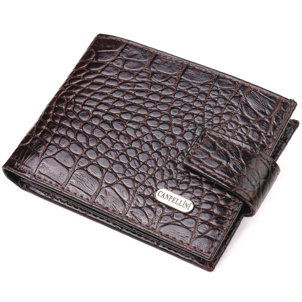 Original Men's Wallet Made of Genuine Textured Leather CANPELLINI Purse 21513 Brown