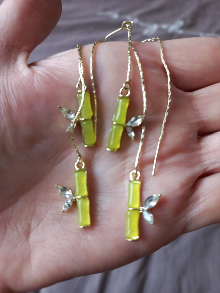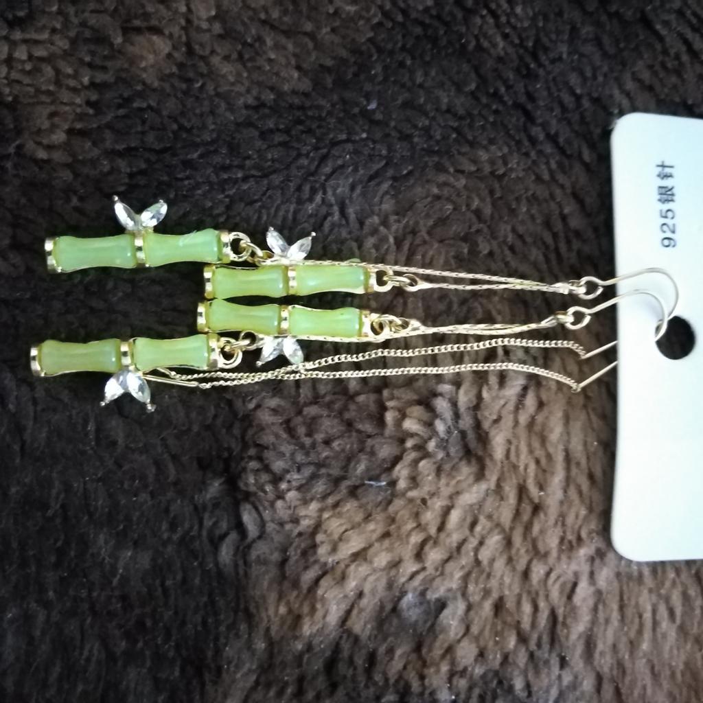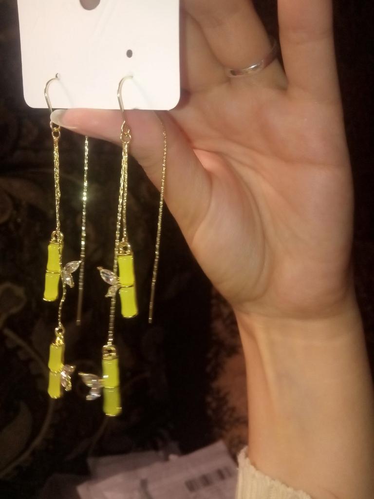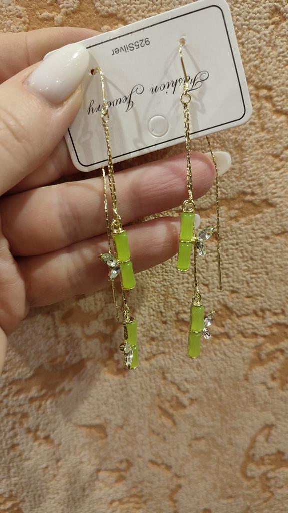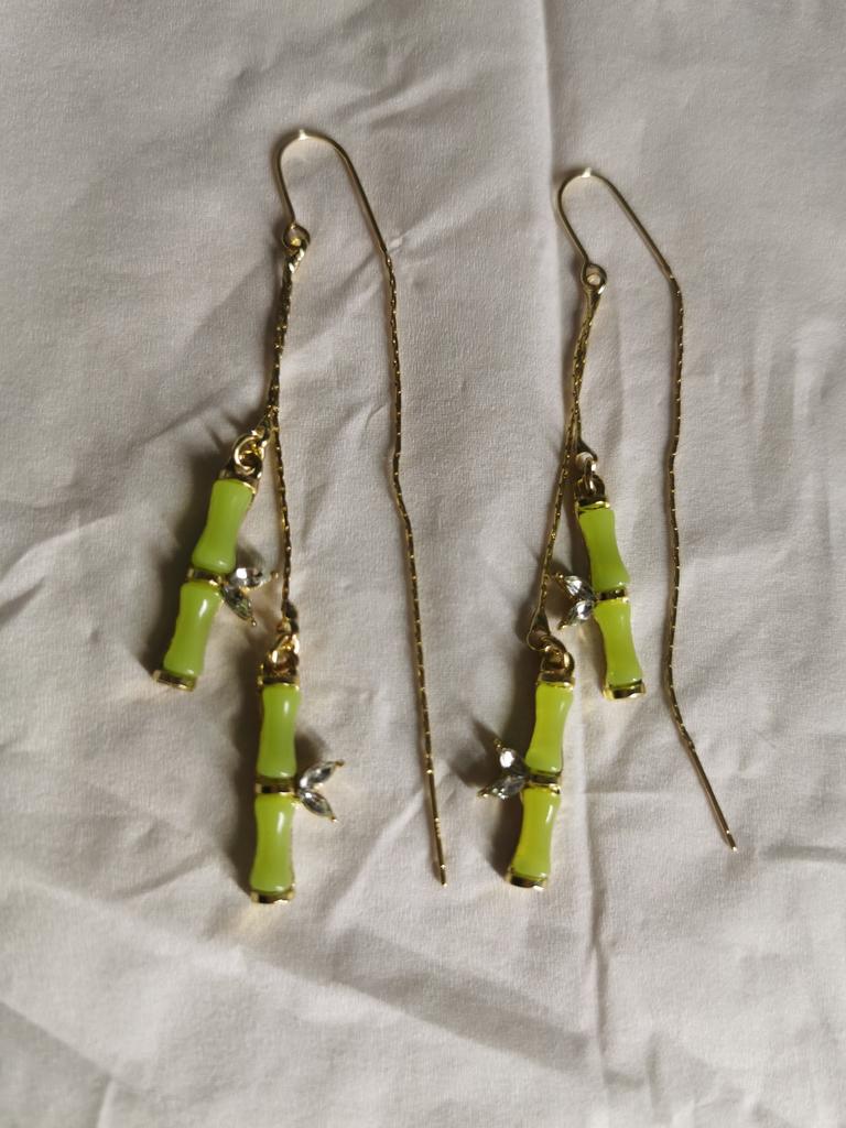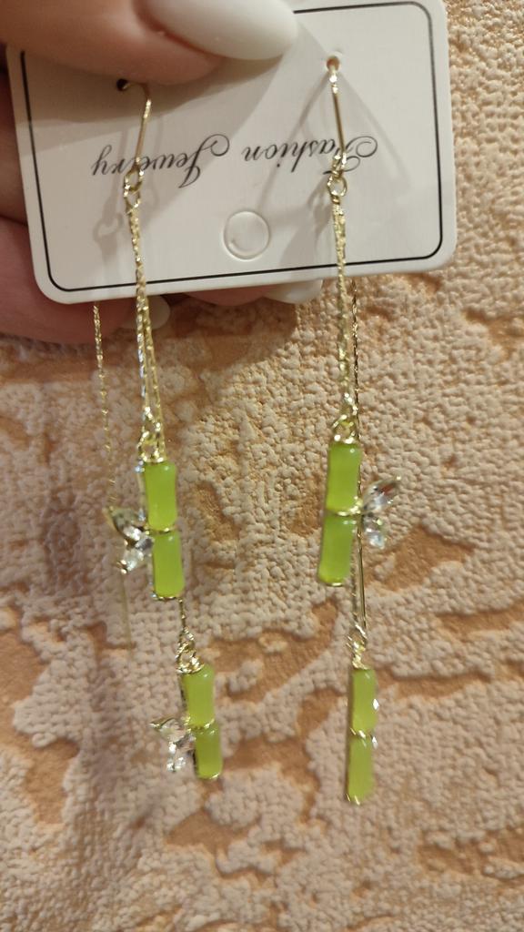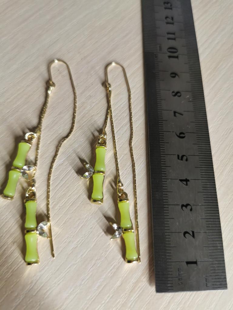 1 Pair Fashion Women's Green Bamboo Knot Style Earrings Tassel Earlines Girls Long Earrings Jewelry Gift ZPG