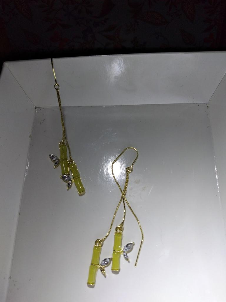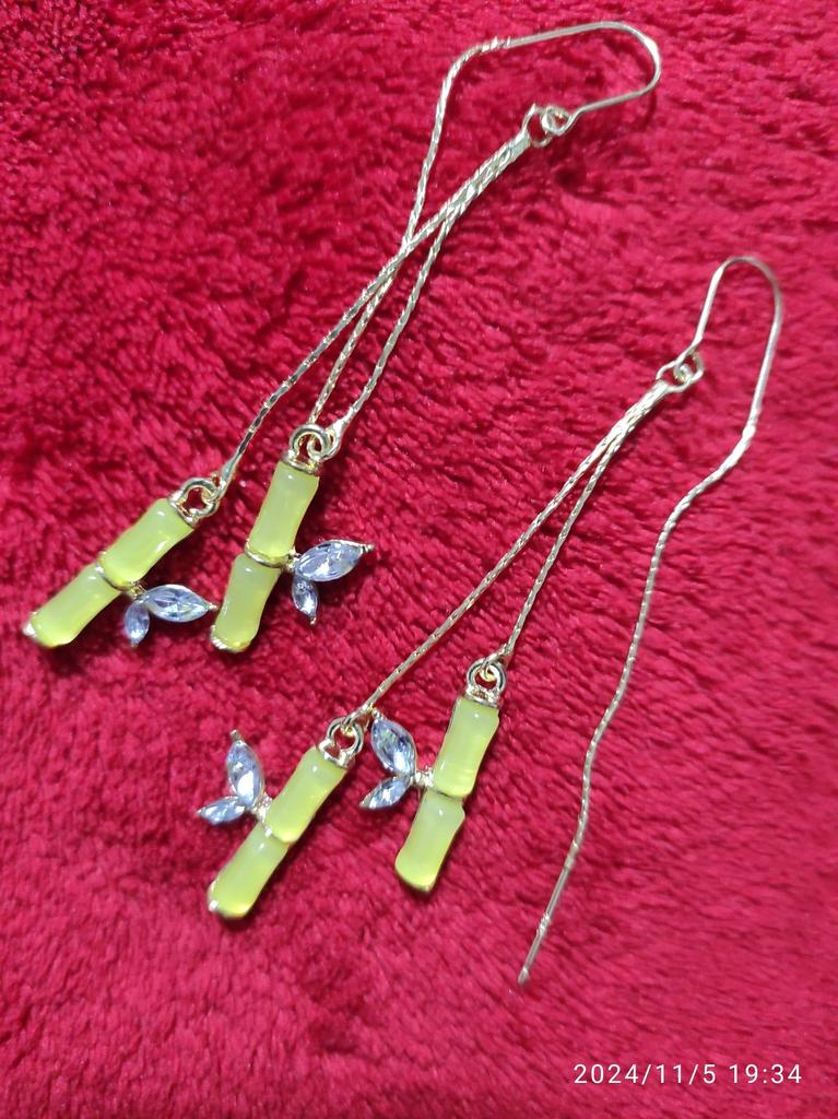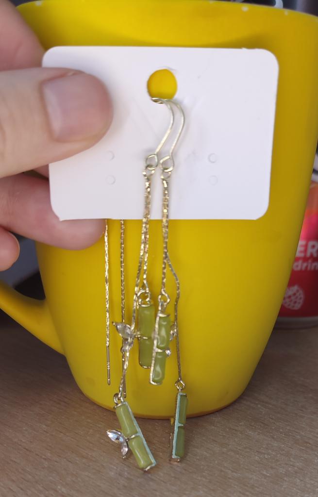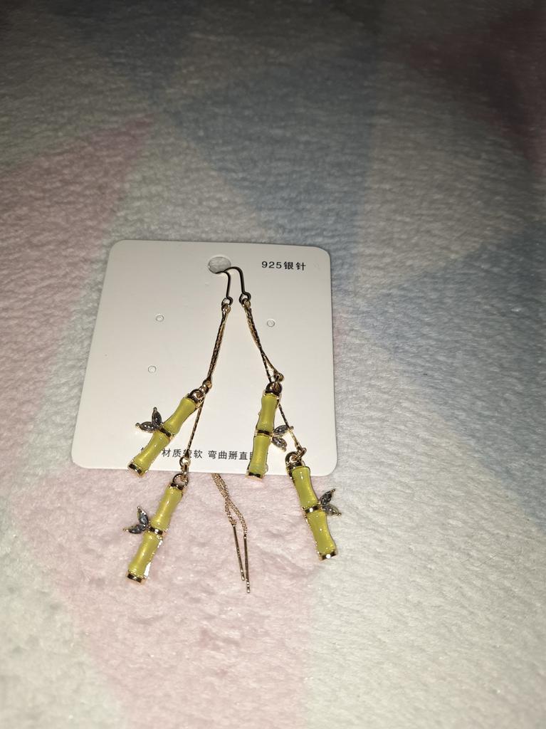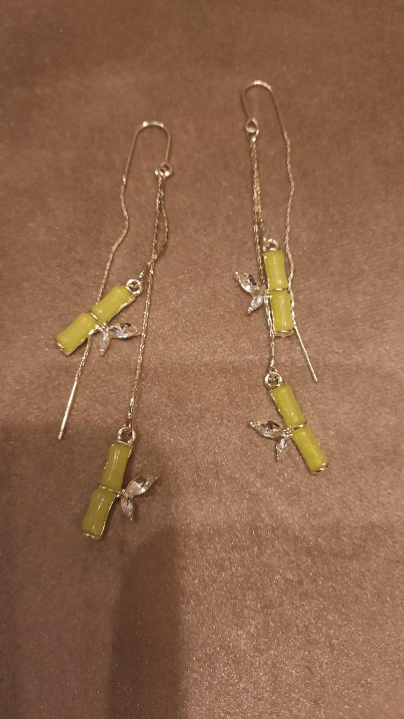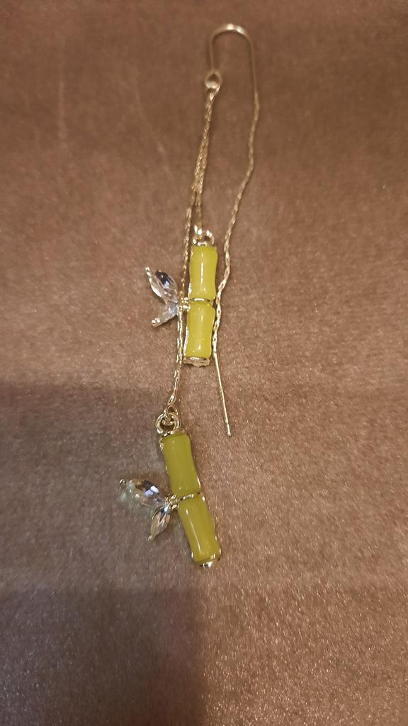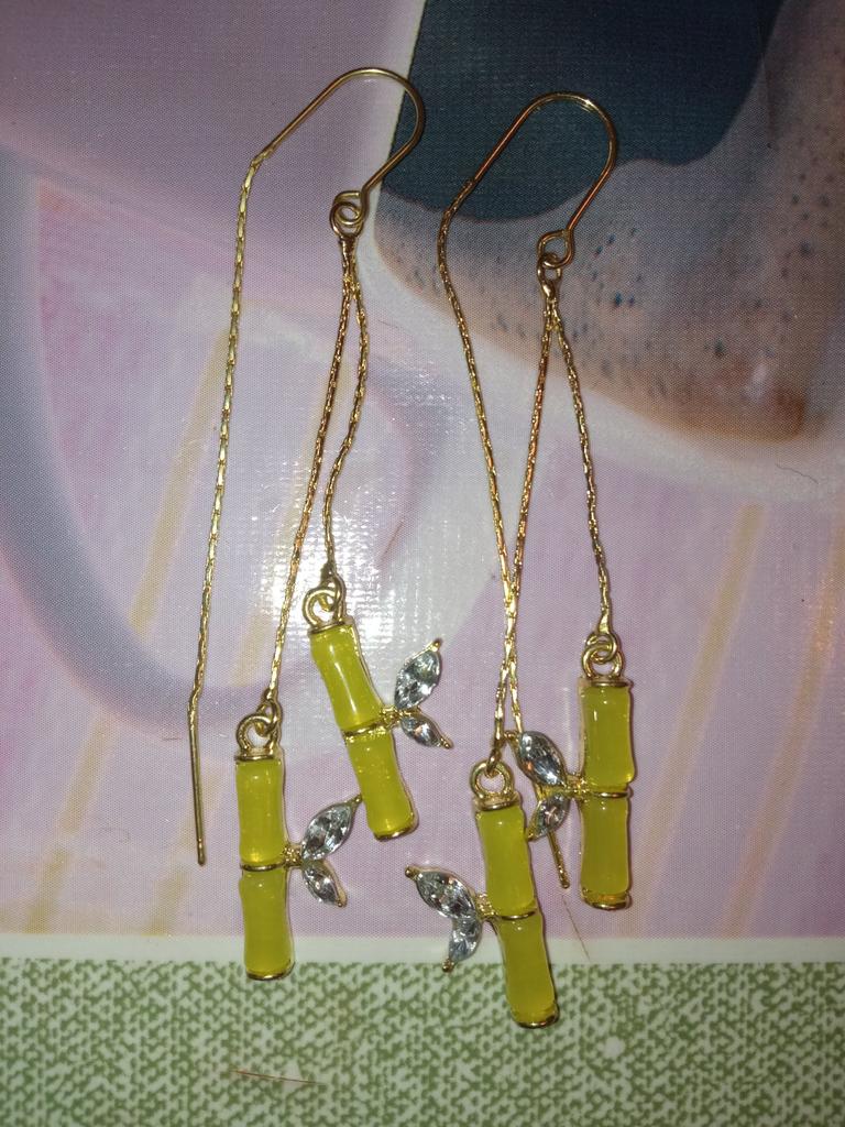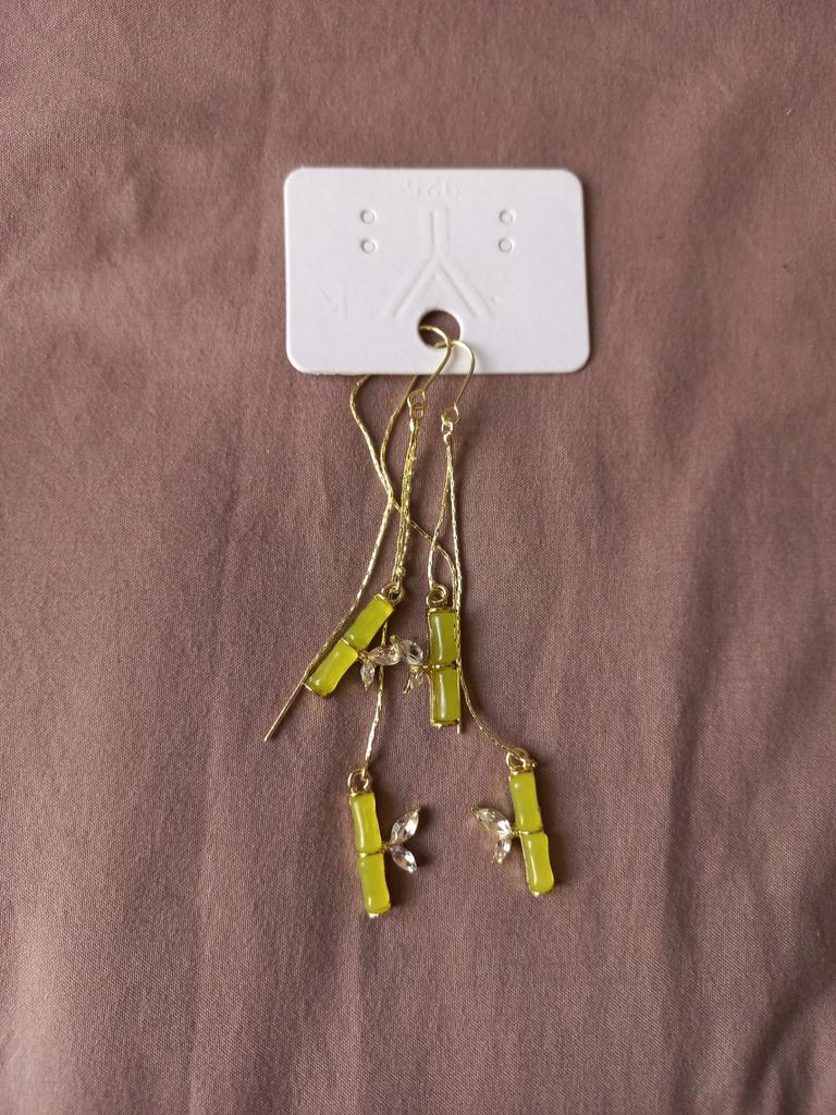 1 Pair Fashion Women's Green Bamboo Knot Style Earrings Tassel Earlines Girls Long Earrings Jewelry Gift ZPG