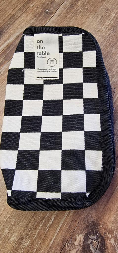 Canvas Pencil Bag, Large Capacity, a Lot of Storage, Checkerboard Pattern, Simple Design for Storing Student Stationery.