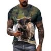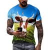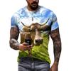 New 3D Funny Animal Cattle Graphic T Shirts Summer Men Fashion Personality Interest Printed Round Neck Short Sleeve Tees Tops